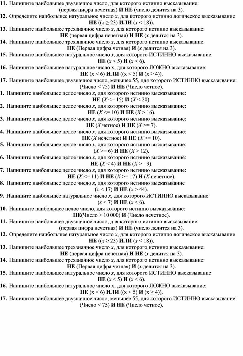 17. Напишите наибольшее двузначное число, меньшее 55, для которого ИСТИННО высказывание: