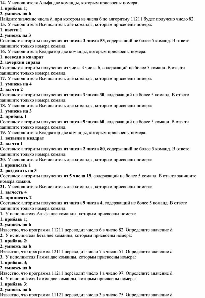 21. У исполнителя Вычислитель две команды, которым присвоены номера:
