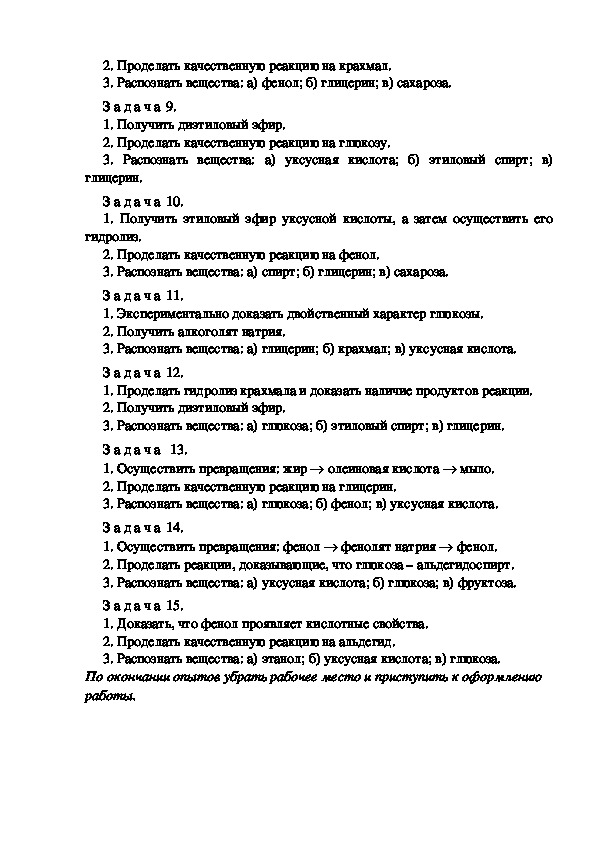 3. Распознать вещества: а) фенол; б) глюкоза; в) этиловый спирт.