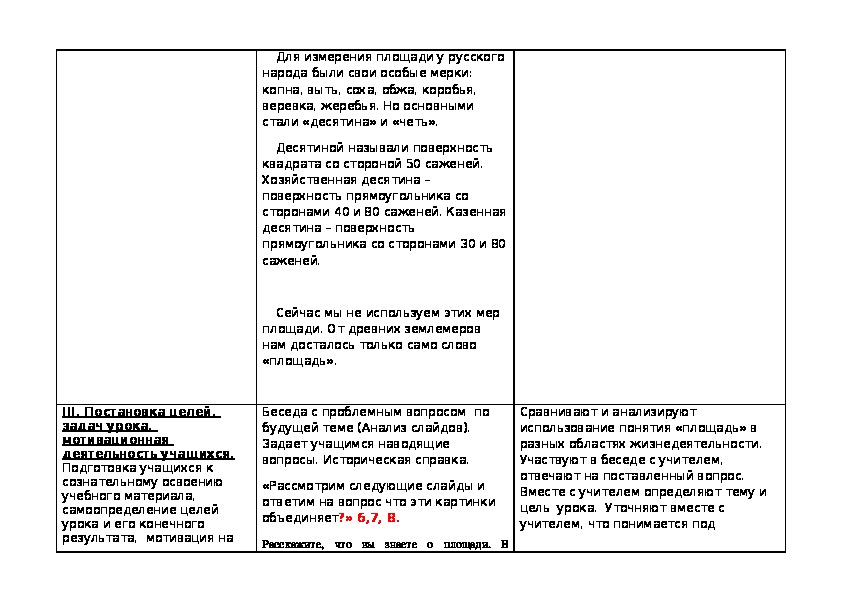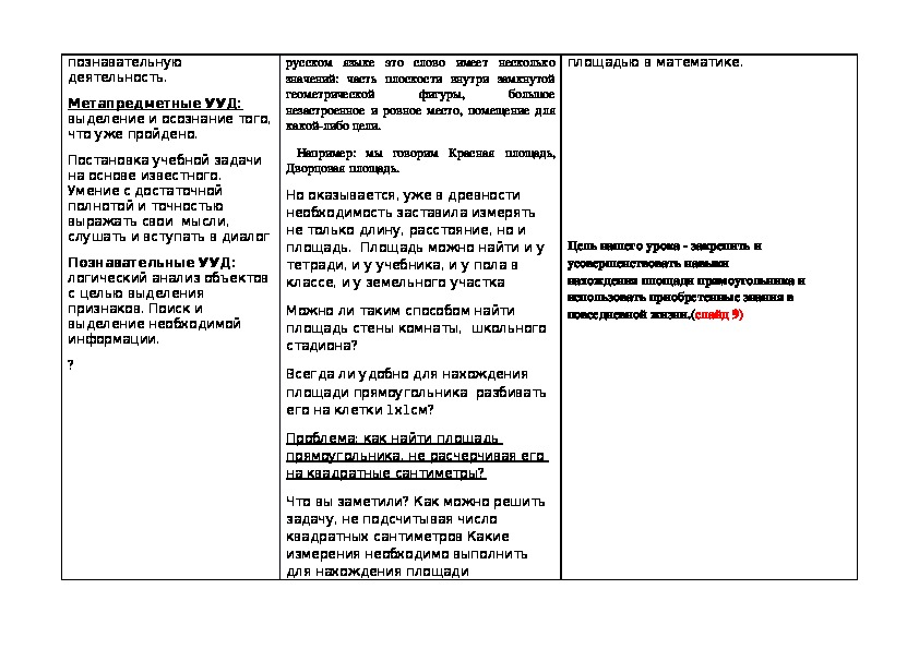 научить в процессе реальной ситуации использовать определения следующих понятий: «площадь
