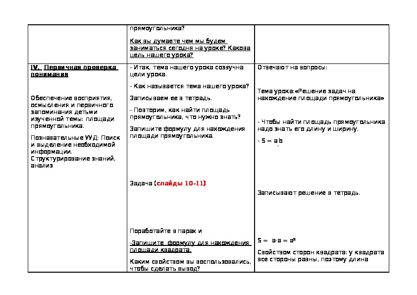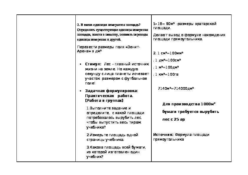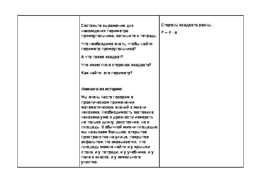 уложенных в ней, вычислять площади квадратов и прямоугольников по формулам. Решать задачи, используя