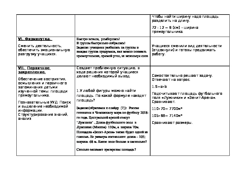 Цель урока: формировать представление о площади; познакомить учащихся с правилом нахождения