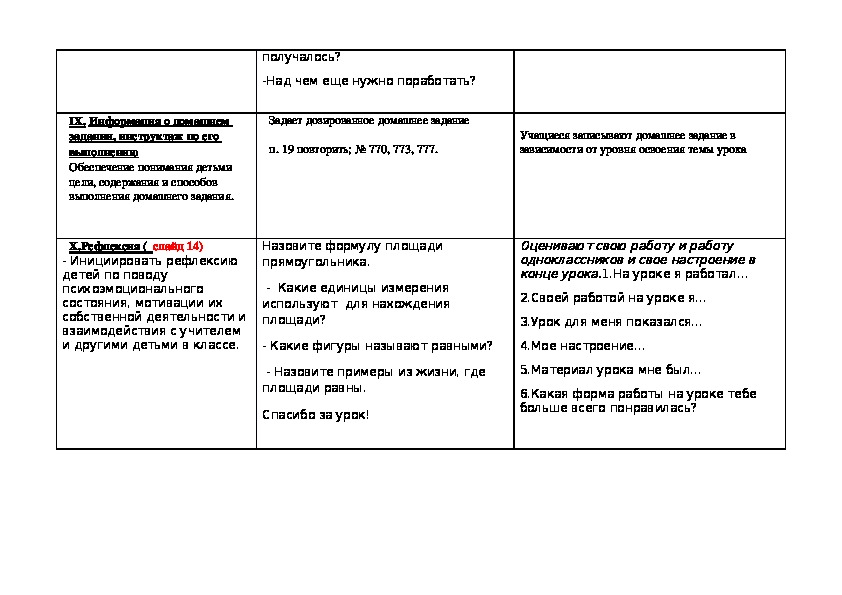 Задачи: закрепить и усовершенствовать навыки нахождения площади прямоугольника; отработать навыки устного счёта; выработать умения по применению полученных знаний; проверить степень усвоения материала путем опроса. Усиление практической направленности обучения;