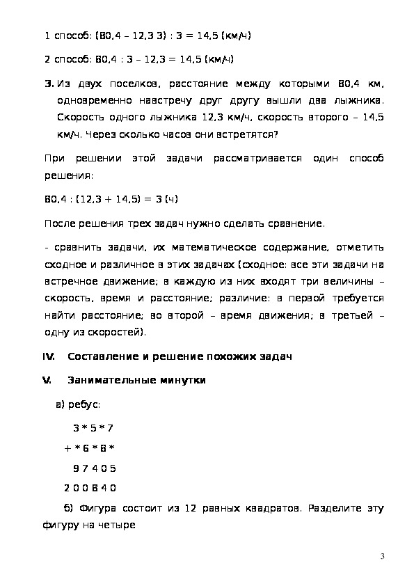 2 способ: 80,4 : 3 – 12,3 = 14,5 (км/ч)