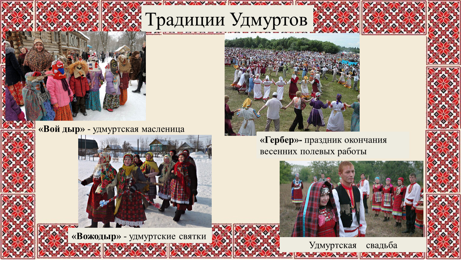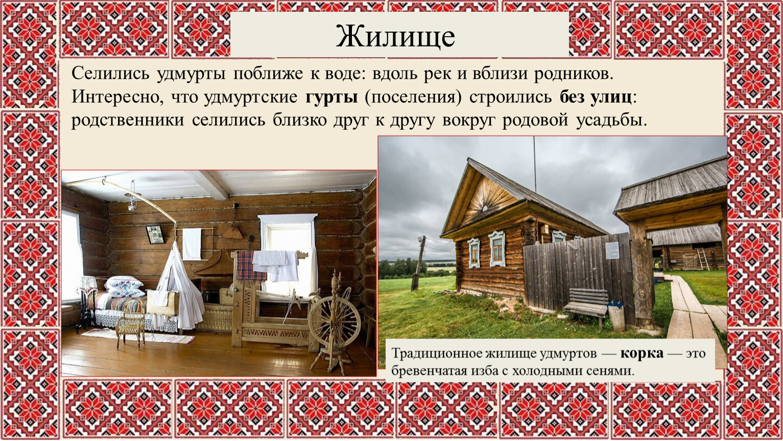 Интересно, что удмуртские гурты (поселения) строились без улиц: родственники селились близко друг к другу вокруг родовой усадьбы.