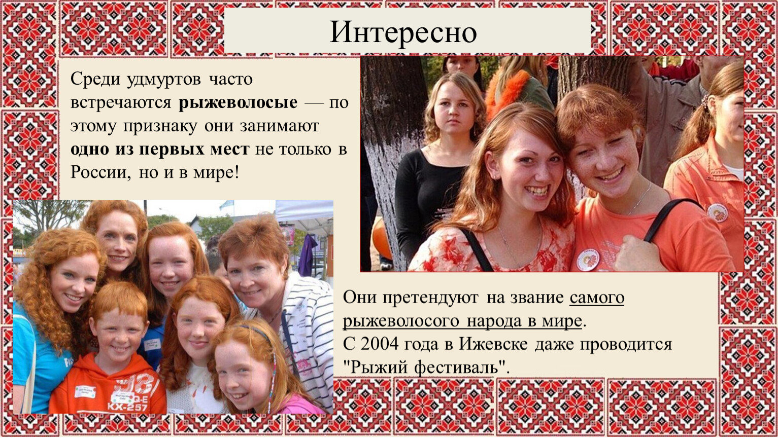 Среди удмуртов часто встречаются рыжеволосые — по этому признаку они занимают одно из первых мест не только в России, но и в мире!
