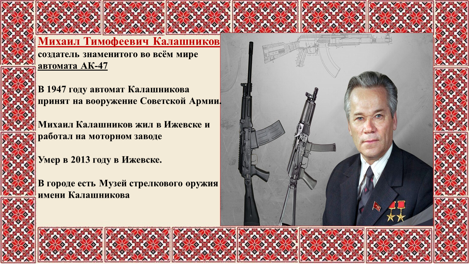 Михаил Калашников жил в Ижевске и работал на моторном заводе