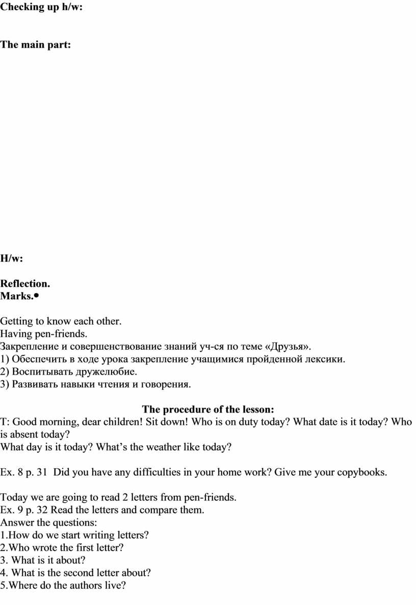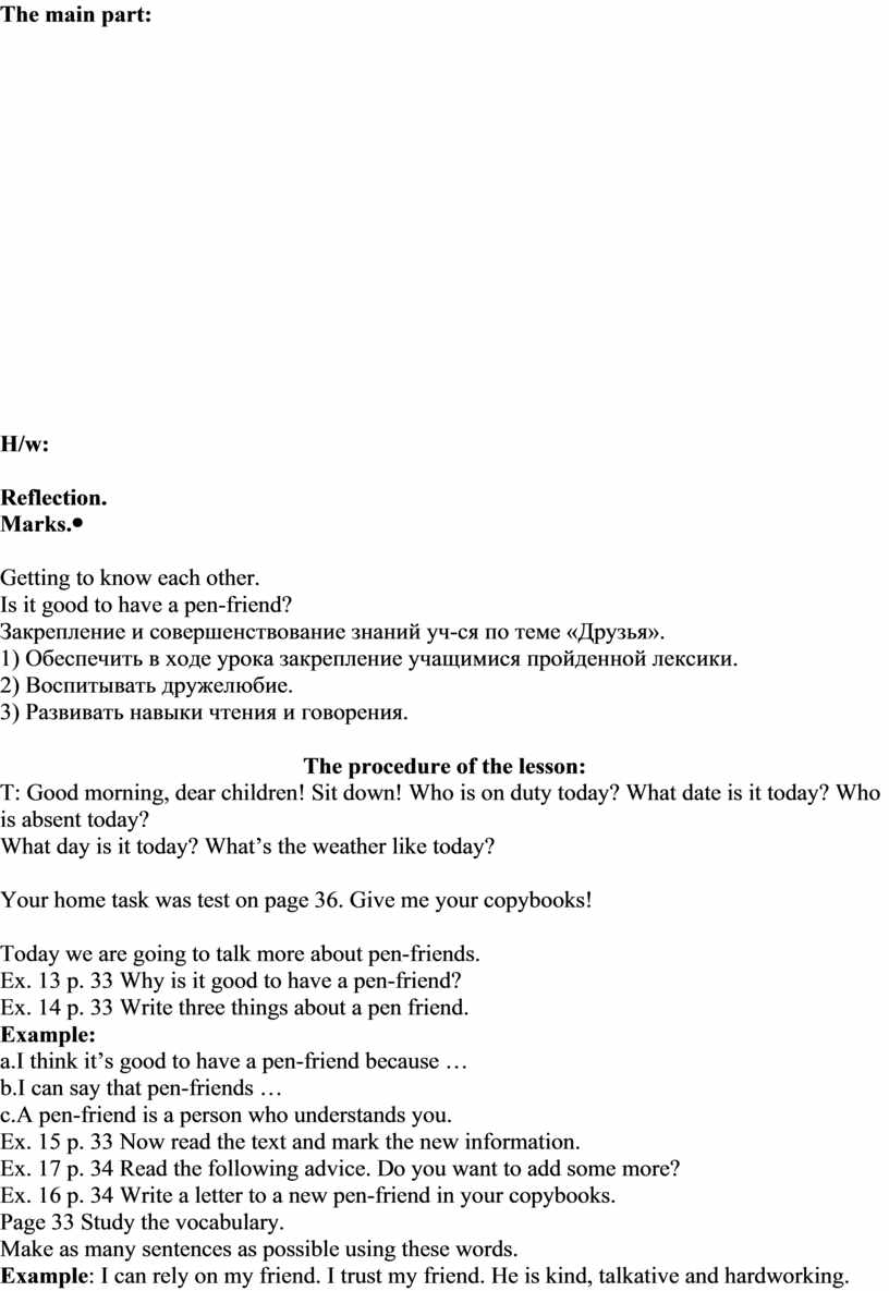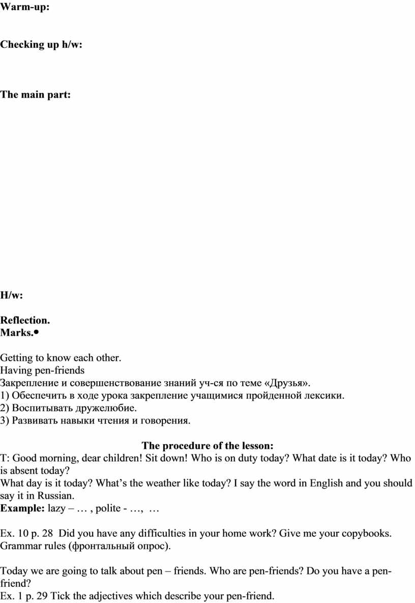 Who is a pen-friend? Why do we need them? The marks for the lesson are … The lesson is over! Good-bye! |