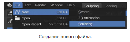 Для перехода в режим скульптинга создайте новый файл File - New – Sculpting