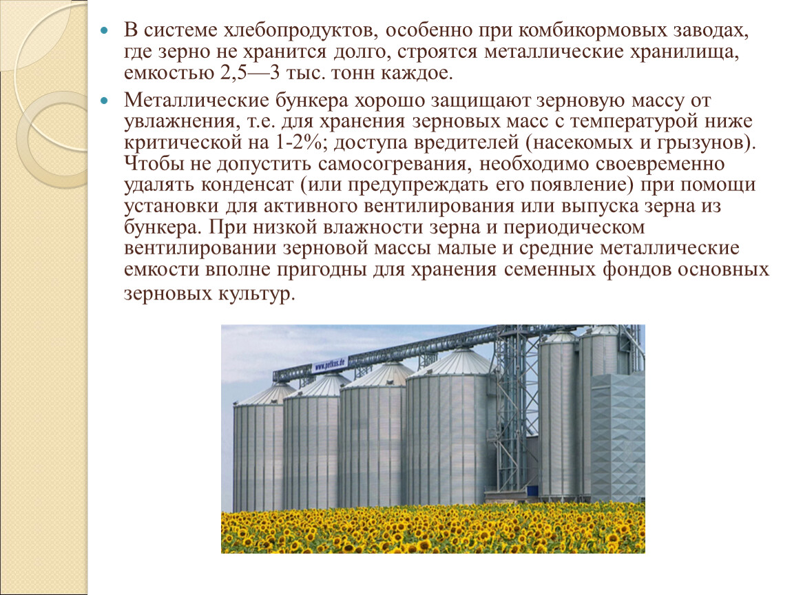 Хранение зерна в типовых зернохранилищах