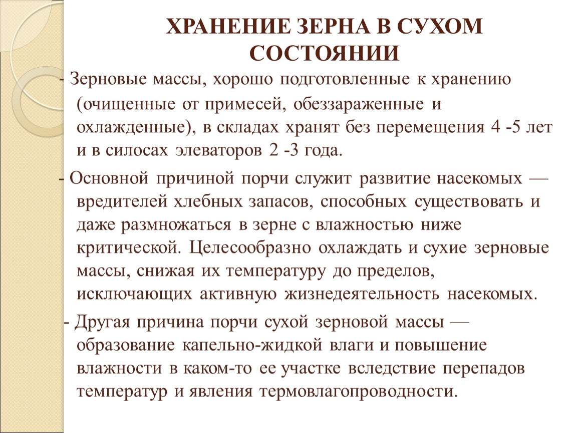 ХРАНЕНИЕ ЗЕРНА В СУХОМ СОСТОЯНИИ