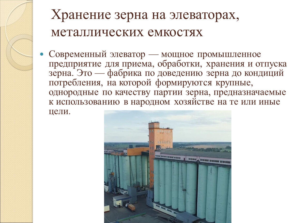3.Хранение зерна на элеваторах, металлических емкостях