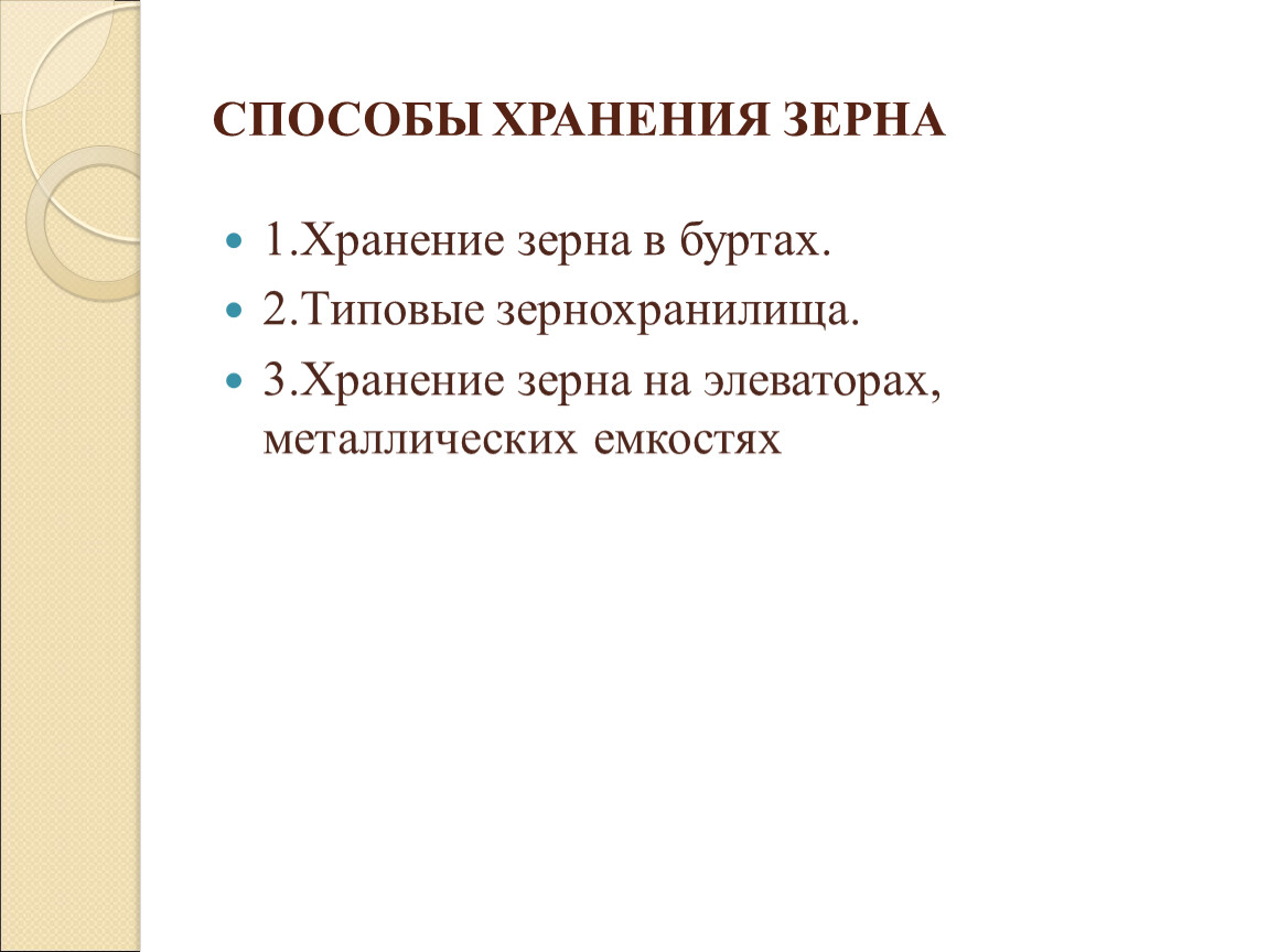 СПОСОБЫ ХРАНЕНИЯ ЗЕРНА