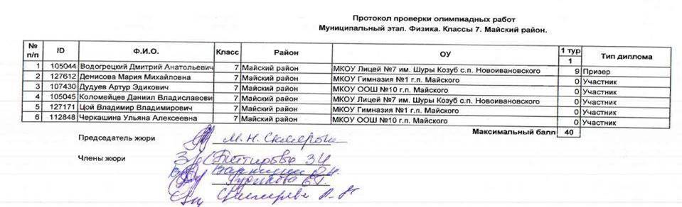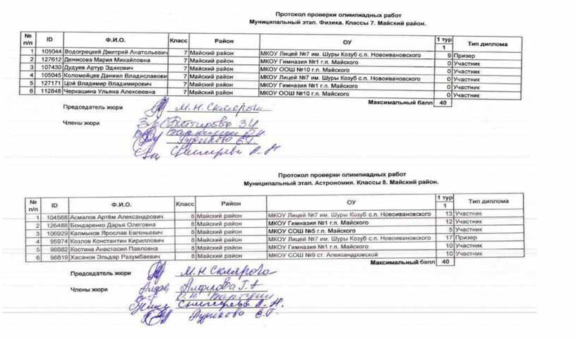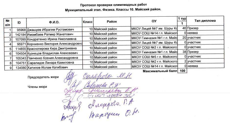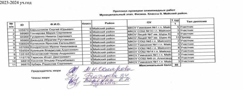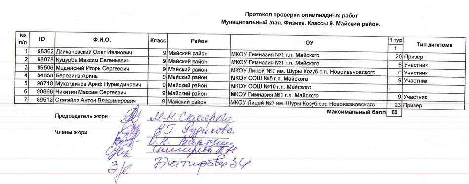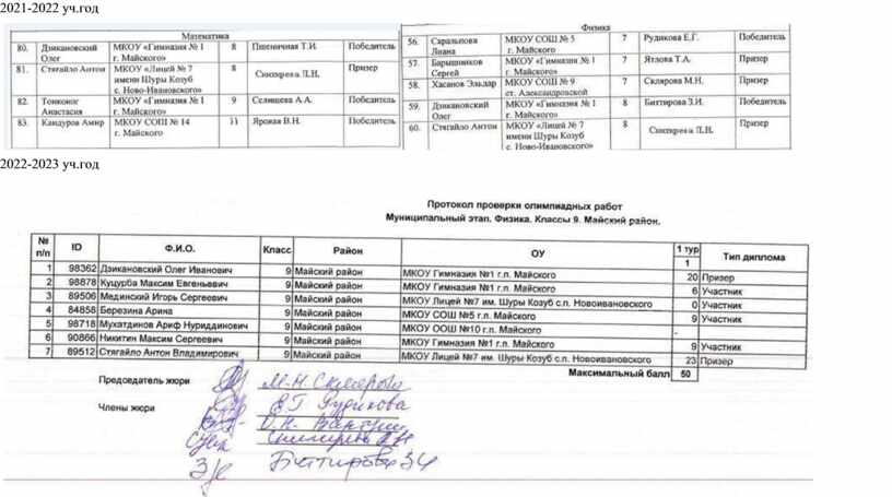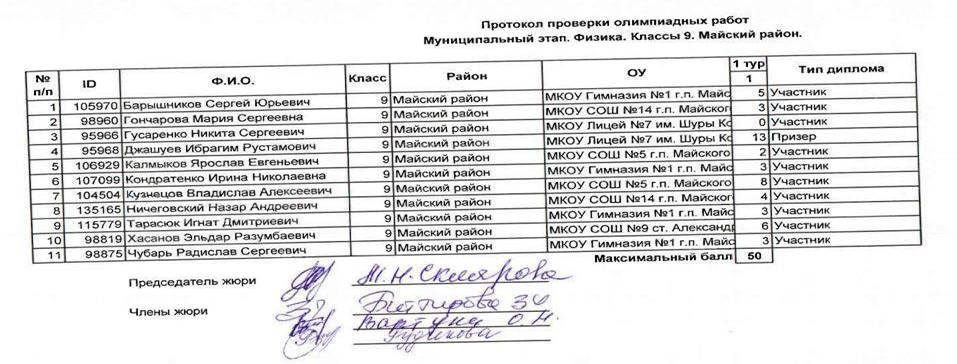 https://kbr-mayedu.ru/images/протоколы_физика- 3.pdf https://kbr-mayedu.ru/index.php/11- dopolnitelno/22-vserossijskaya- olimpiada-shkolnikov Приказ МУ ОУ от 15.05.2023 г № 107-ОД КБР, г. Майский |