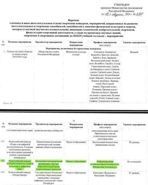 дистанционных мероприятиях, имеющих официальный статус приказами Министерства просвещения Российской Федерации и образовательных организаций высшего образования