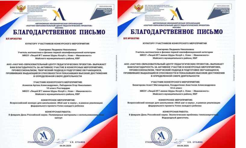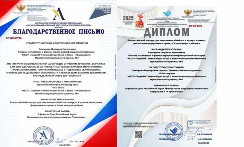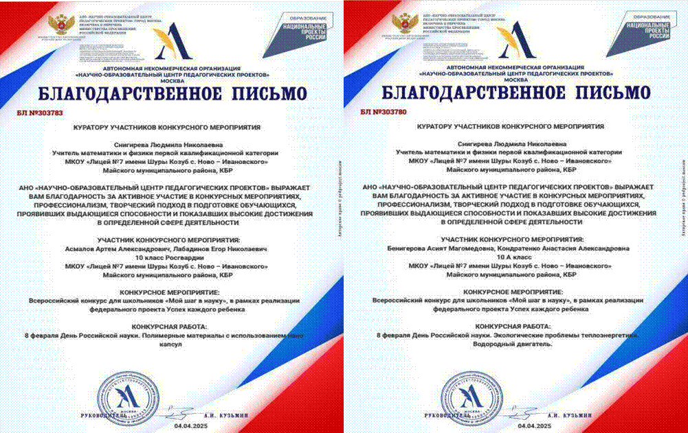 Всероссийски й конкурс для школьников «Мой шаг в науку», в рамках реализации федерального проекта Успех каждого ребенка |