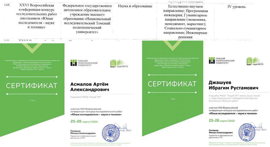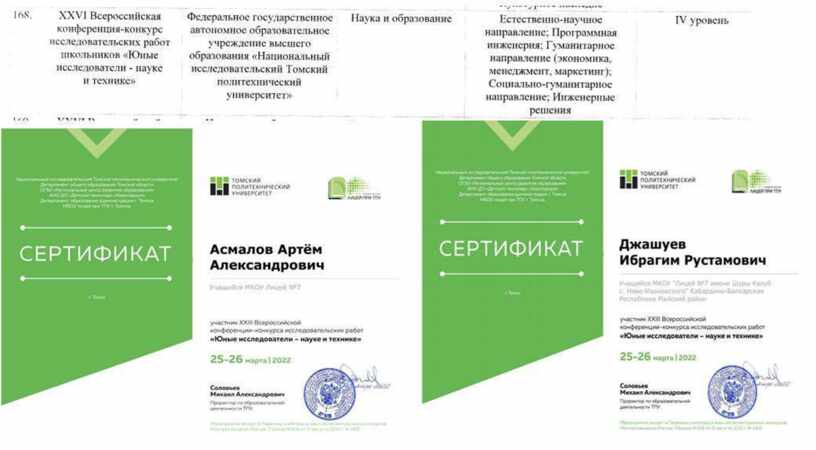 XXIII Всероссийская конференция-конкурс исследовательских работ «Юные исследователи – науке и технике» (III уровень олимпиад) г. Томск, 2022 г. |