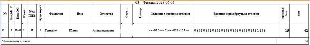 Таблица 7. Результаты государственной итоговой аттестации по физике в 9 классе в форме
