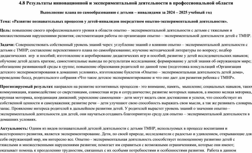4.8 Результаты инновационной и экспериментальной деятельности в профессиональной области