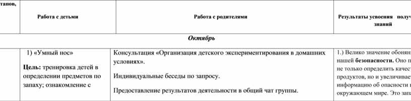 2 этап. Сентябрь. Разработка консультаций, опросов, буклетов для родителей; подготовка перспективного планирования работы с детьми-инвалидами (ОВЗ) «Детское экспериментирование – один из видов познавательной деятельности»; разработка плана пополнения развивающей предметно – пространственной среды в группе по теме; составление картотек с дидактическими играми по теме.