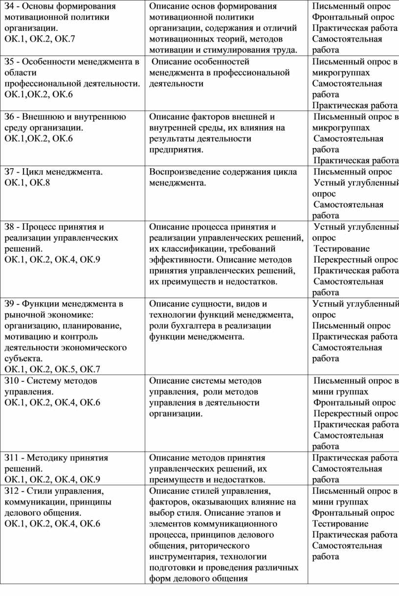 В результате аттестации по учебной дисциплине ОП.03 Менеджмент осуществляется комплексная проверка следующих умений и знаний, а также динамика формирования общих компетенций: