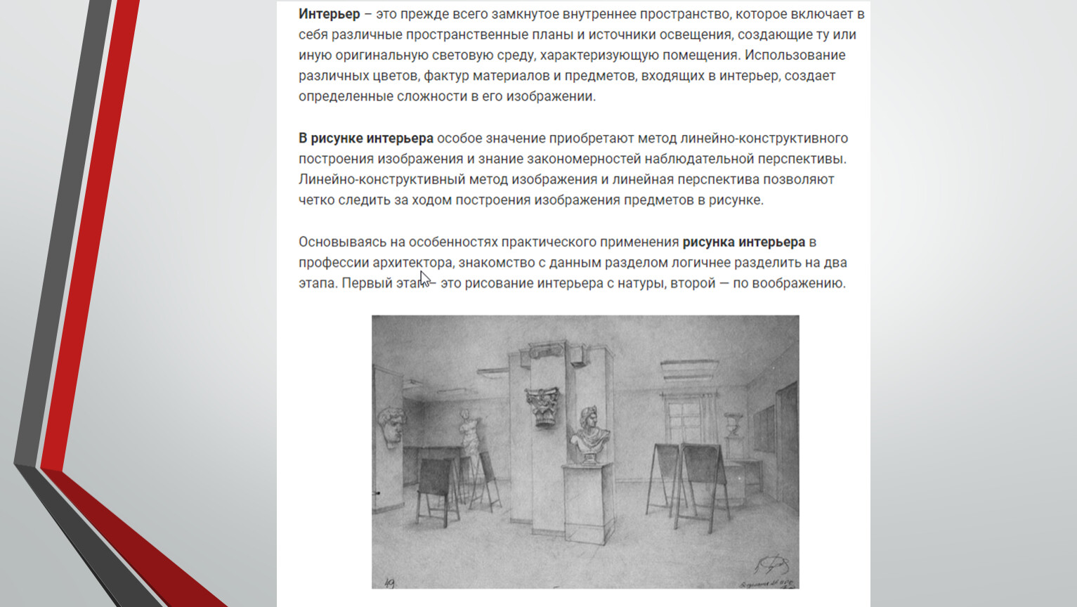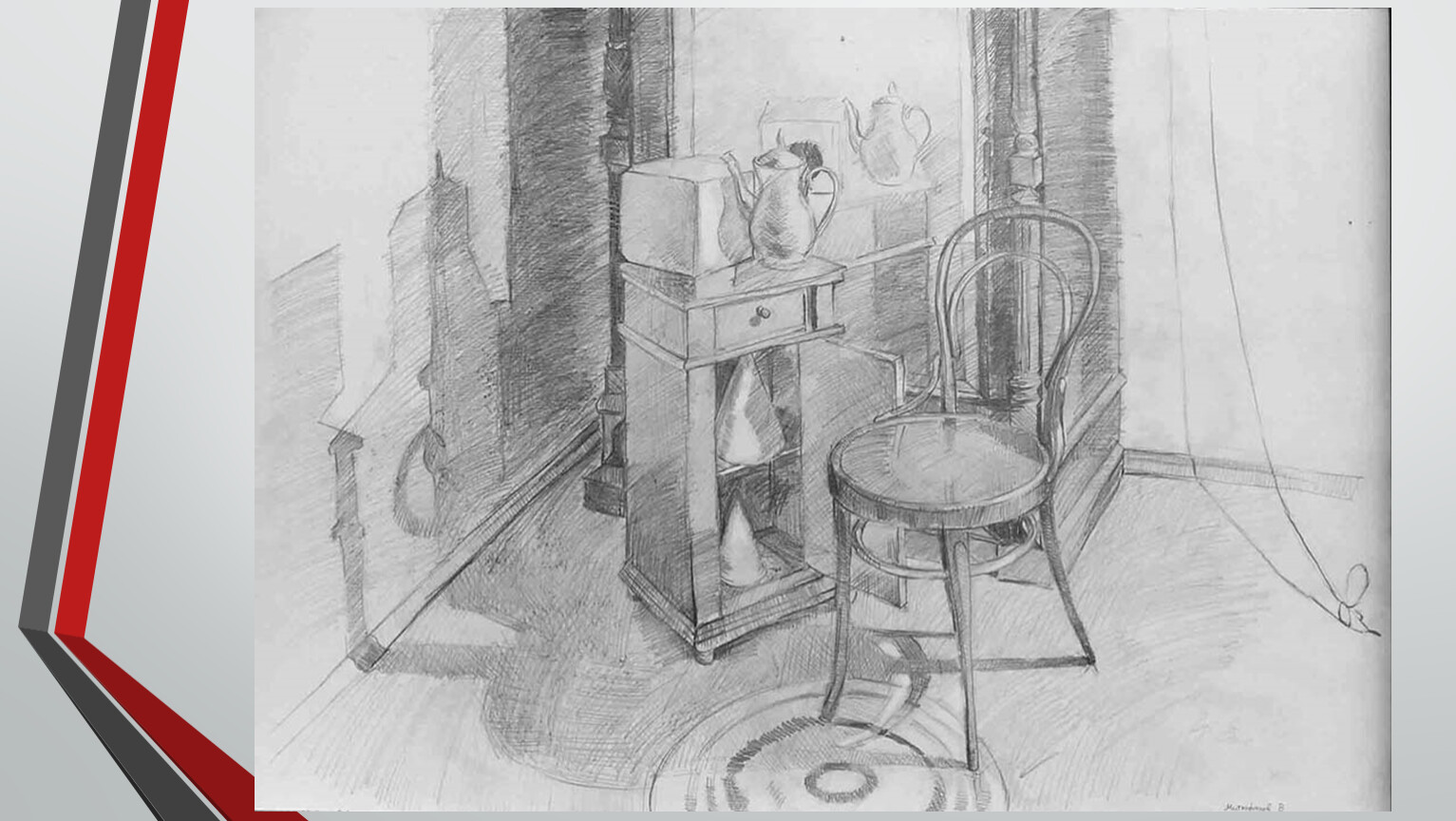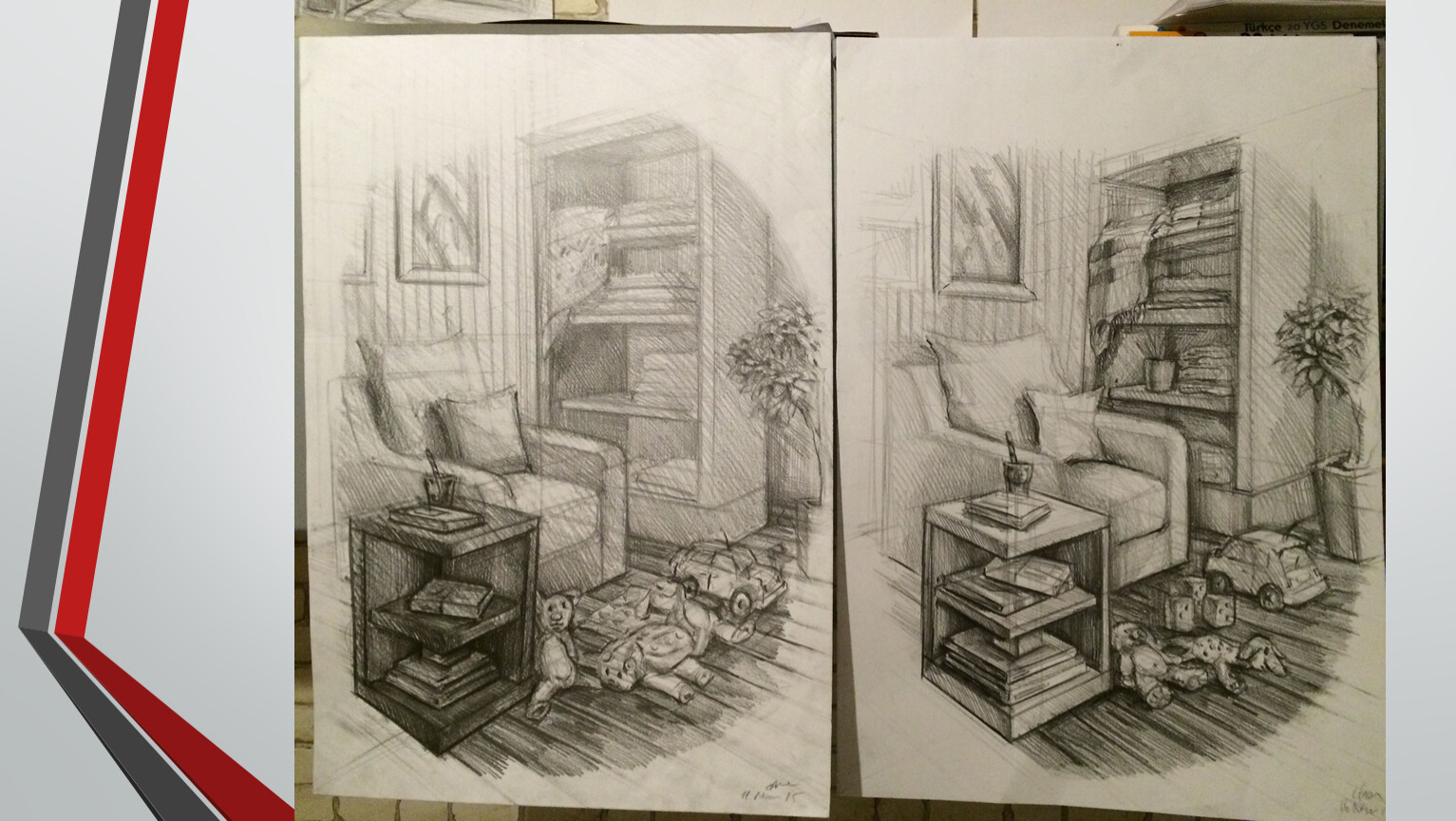 Задание: Выполнить кратковременный рисунок интерьера с натуры (2 занятия).