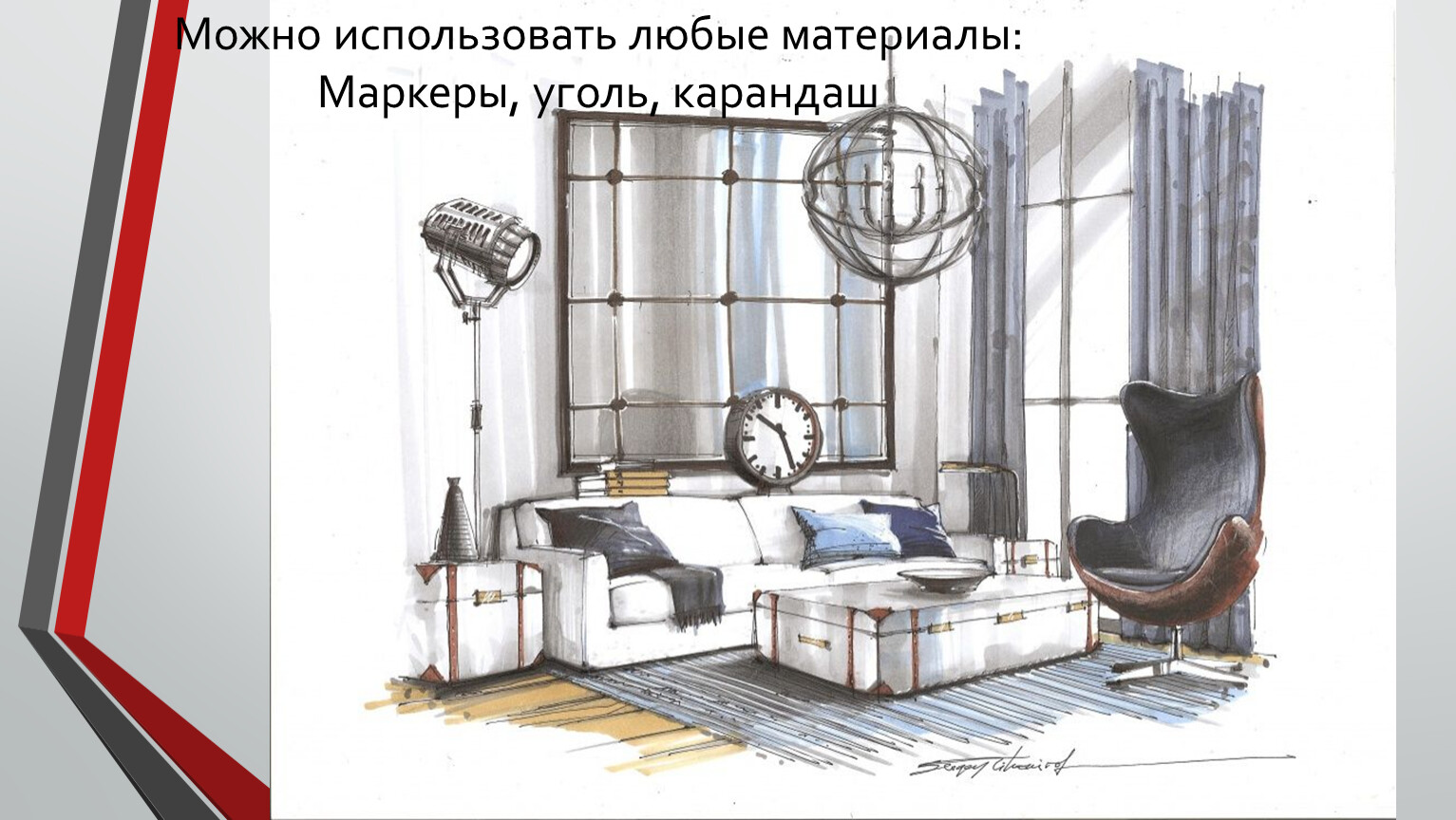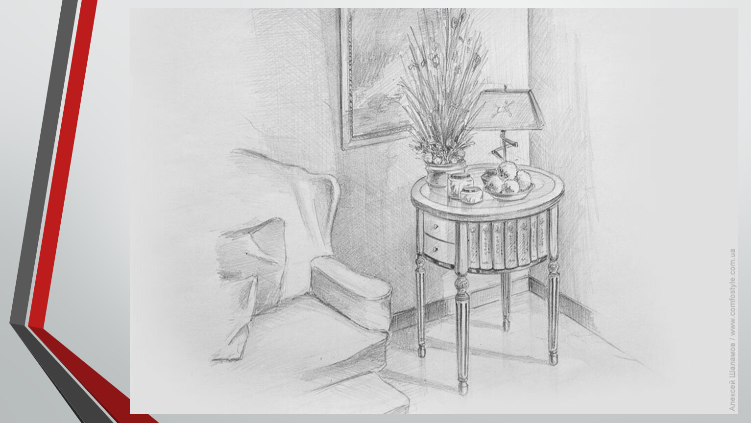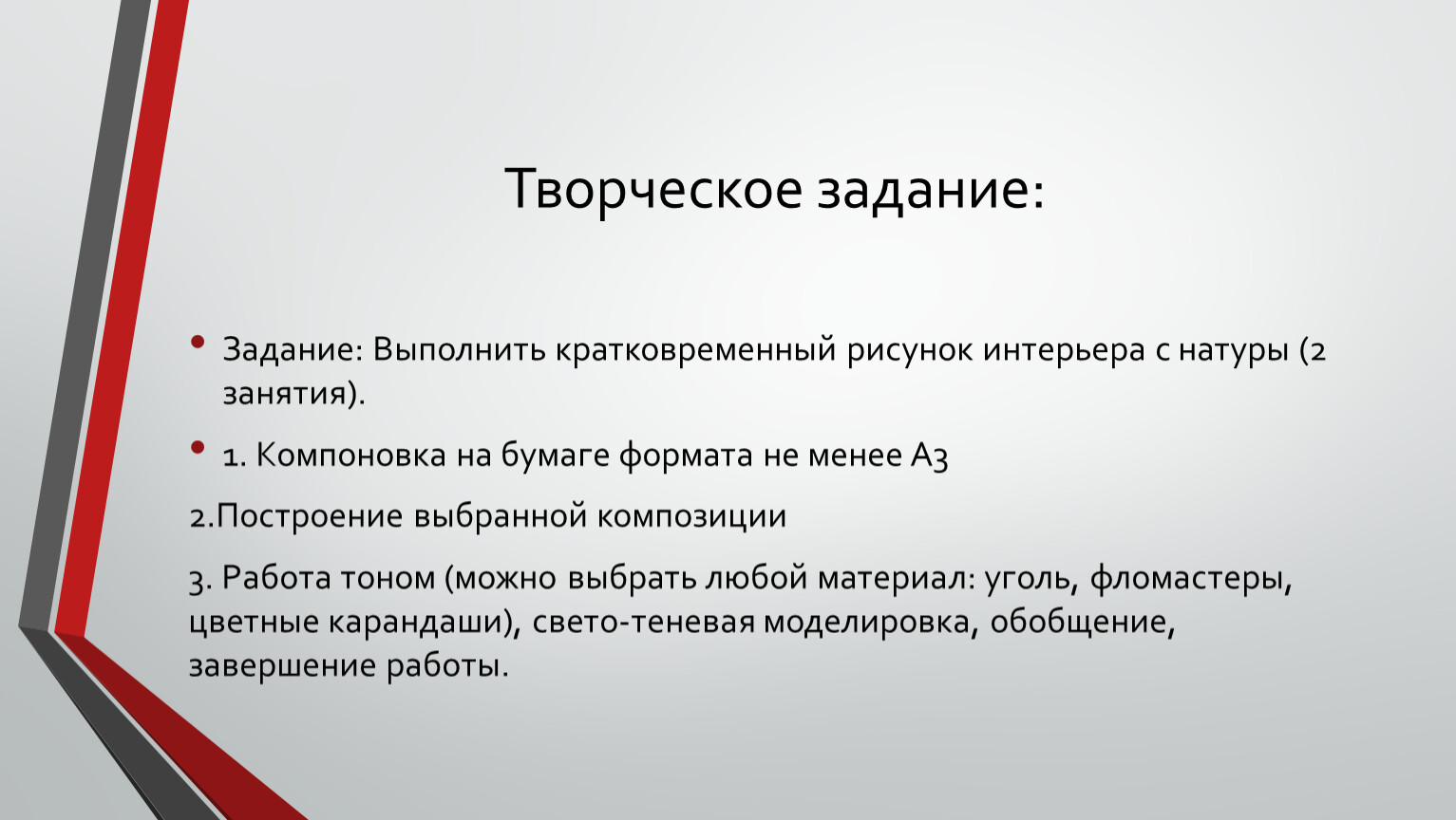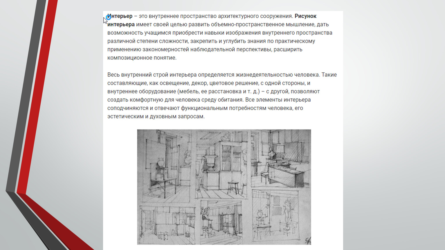 Задание: Выполнить кратковременный рисунок интерьера с натуры (2 занятия).
