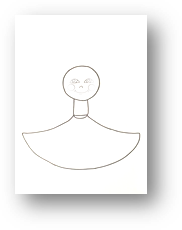 От овала рисуем трапецию или расширяющийся книзу юбку с волнистым или прямым низом – это сарафан.