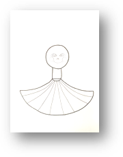 - Рассмотрите образец. Что это? (Голова-солнце, лучи, сарафан). Какой формы голова? (Круглая). Какие лучи? (Треугольные, острые, похожи на огоньки или на лучики света). Во что одето солнце? (В сарафан). Чем украшен сарафан? (Полосками, точками, волнистыми линиями, цветочками).
