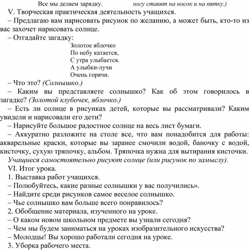 Учащиеся самостоятельно рисуют солнце (или рисунок по замыслу).