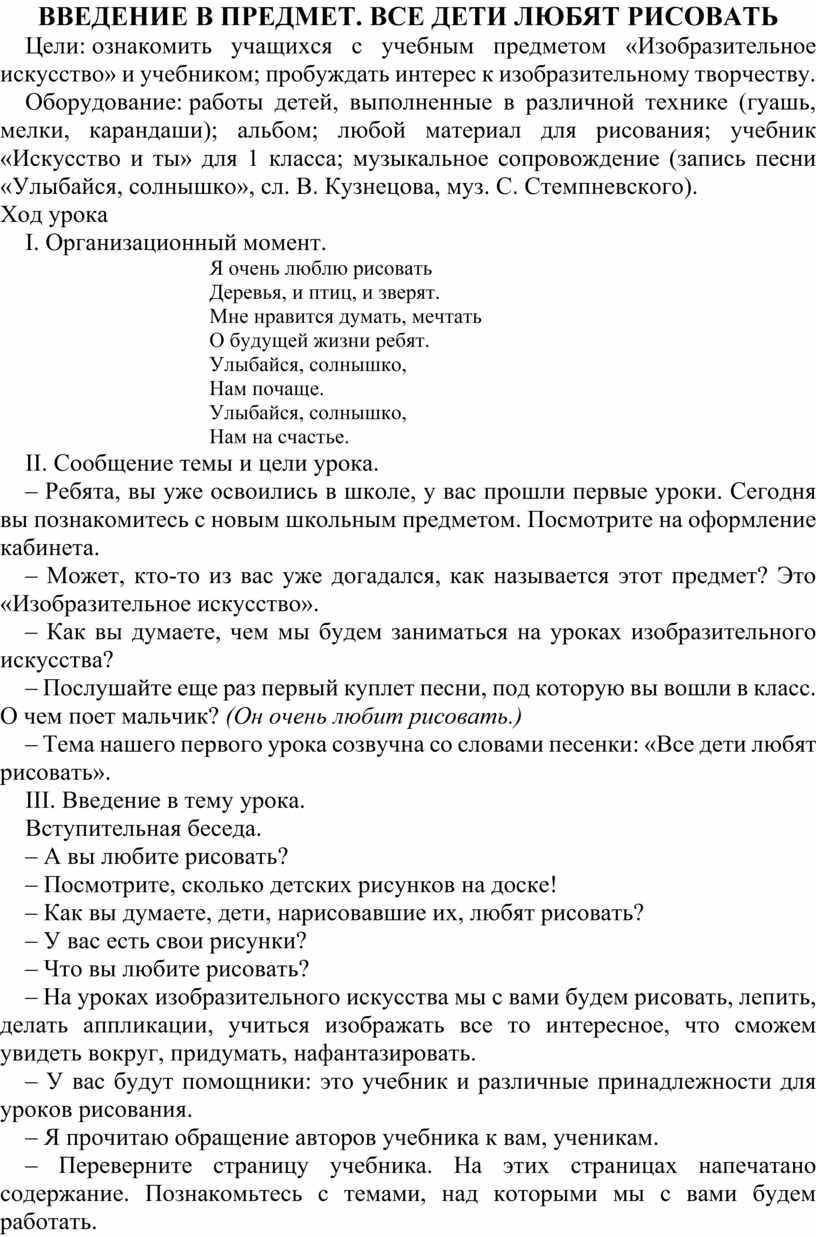 ВВЕДЕНИЕ В ПРЕДМЕТ. ВСЕ ДЕТИ ЛЮБЯТ РИСОВАТЬ