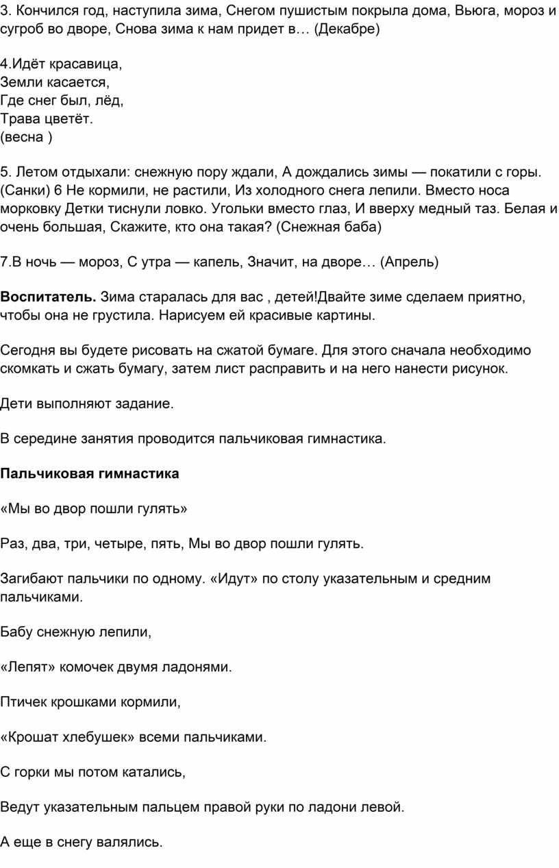 Воспитатель вместе с детьми вспоминает зимние забавы (катание на санках, коньках, лыжах; игры в снежки; лепка снежной бабы и др.). Читает короткие стихотворения,