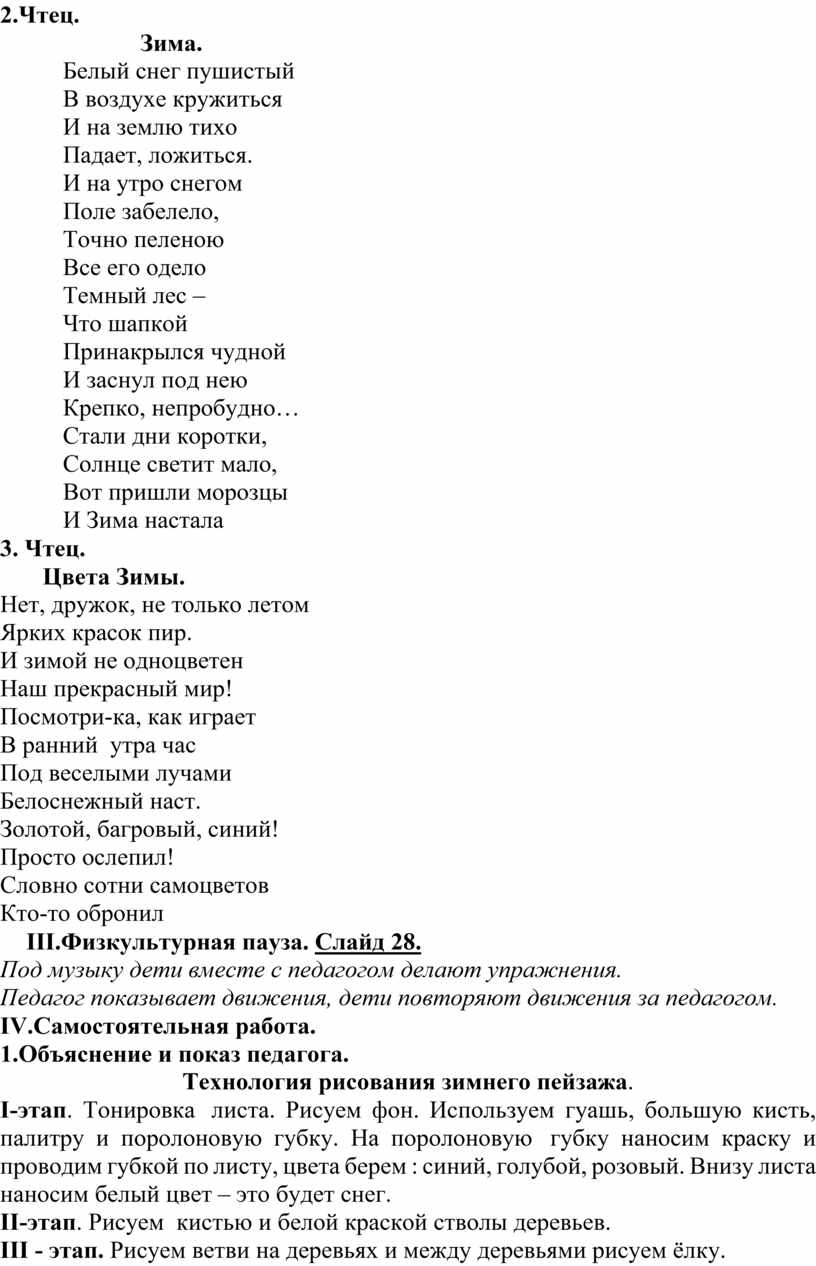 Педагог: - Кто может сказать, чему посвящено наше занятие (Зиме).