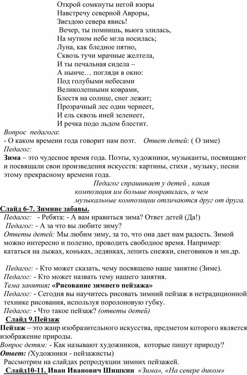 Педагог: Здравствуйте! Наше занятие я хотела начать с отрывка стихотворения русского поэта А.С. Пушкина.