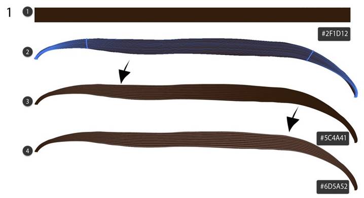 Нарисуйте коричневый прямоугольник (#2F1D12), затем при помощи инструмента Mesh/Сетчатый градиент (U) придайте ему форму как показано ниже.