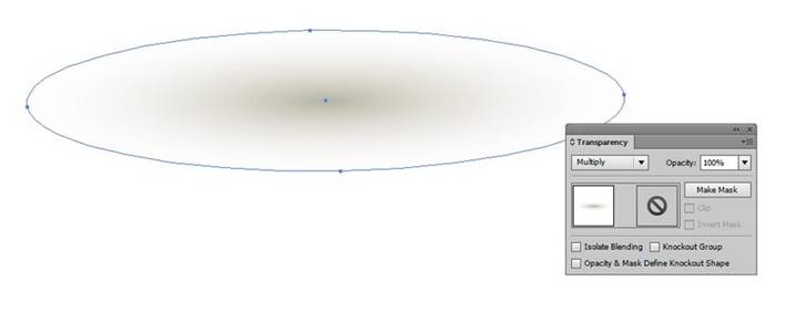 Теперь рисуем тень для нашей работы. Залейте овал радиальным градиентом от цвета #B7B6A3 к #FFFEFF.