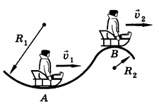 R1 = 20 м, υ1 = 10 м/с, R2 = 10 м, υ2 = 5 м/с,