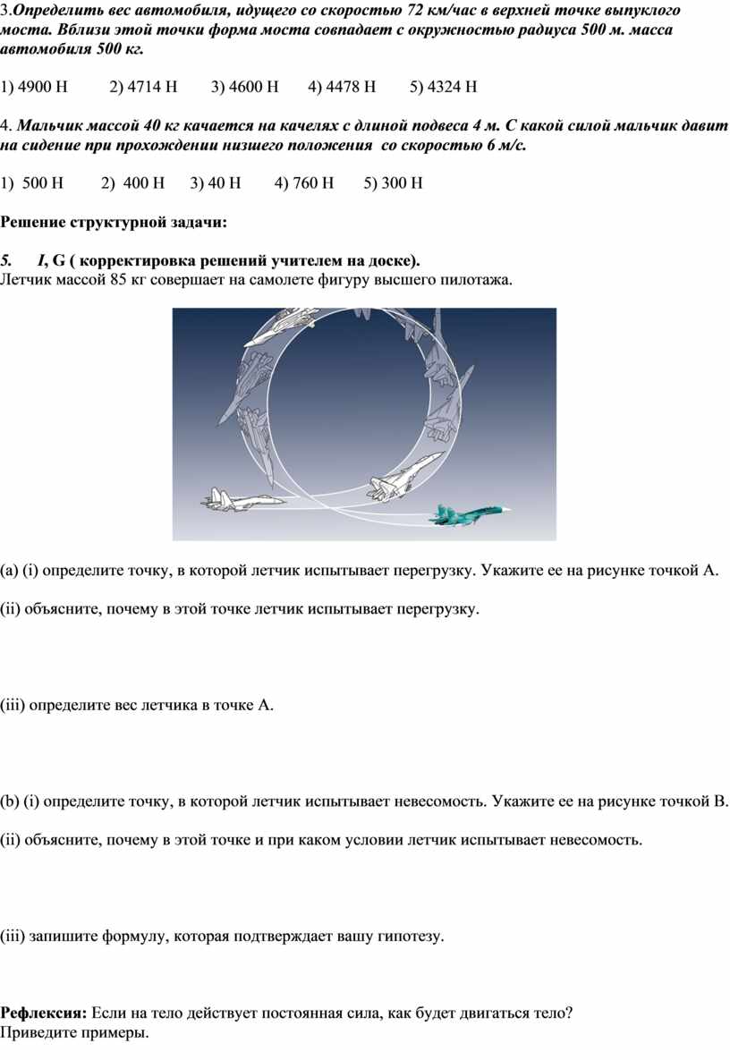 (ii) объясните, почему в этой точке и при каком условии летчик испытывает невесомость.