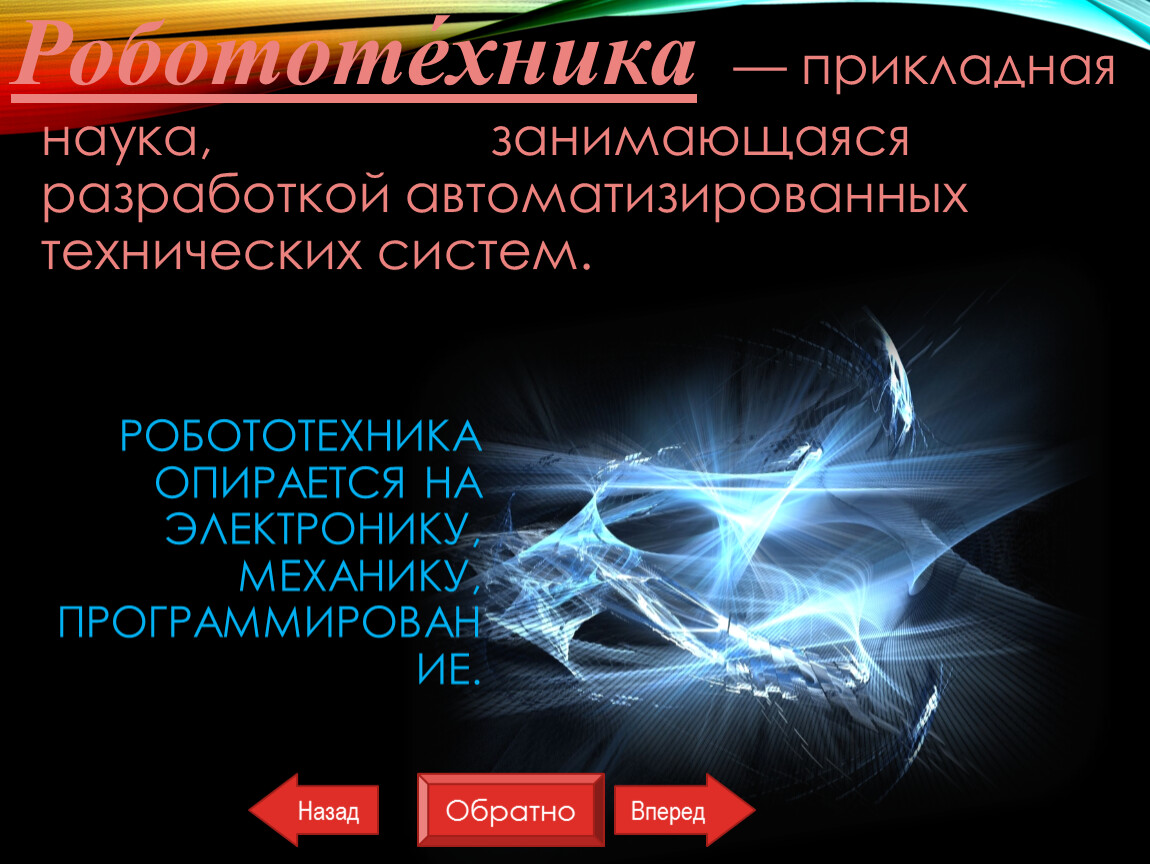 Робототе́хника — прикладная наука, занимающаяся разработкой автоматизированных технических систем.