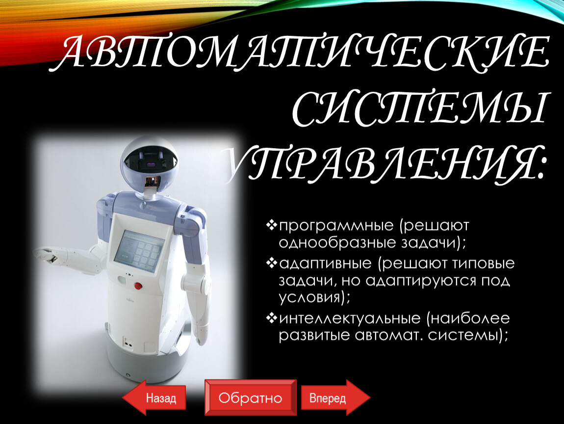 интеллектуальные (наиболее развитые автомат. системы);