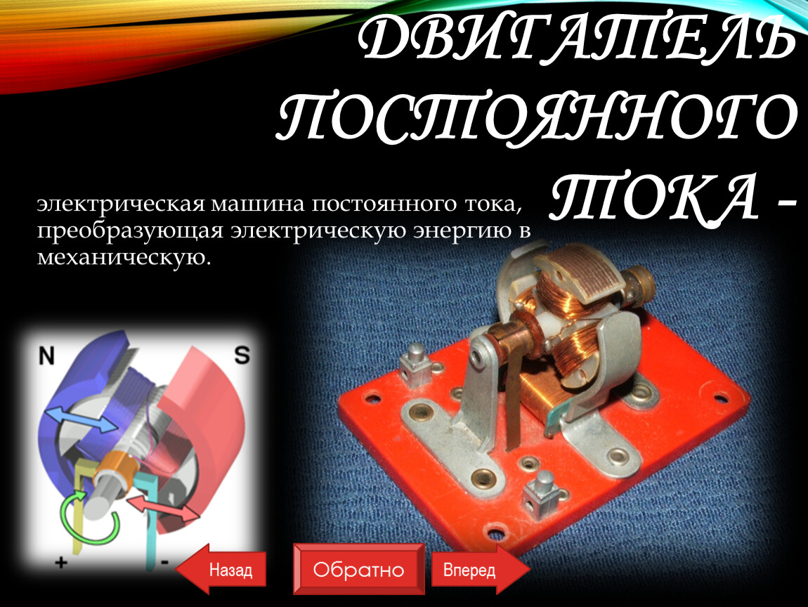 электрическая машина постоянного тока, преобразующая электрическую энергию в механическую.