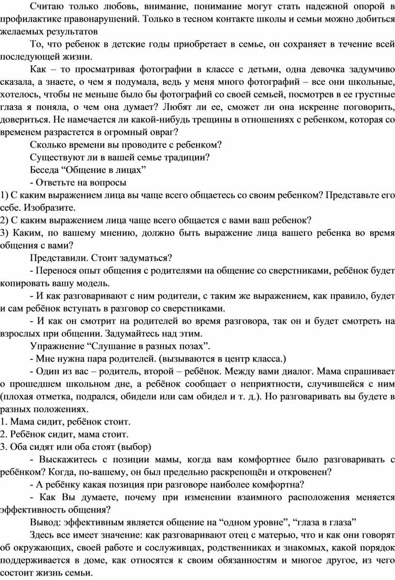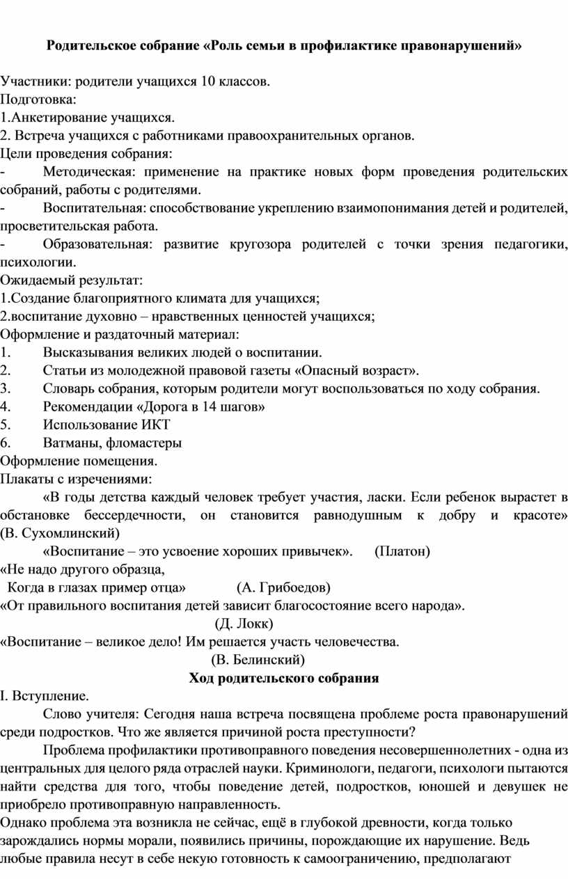 Родительское собрание «Роль семьи в профилактике правонарушений»