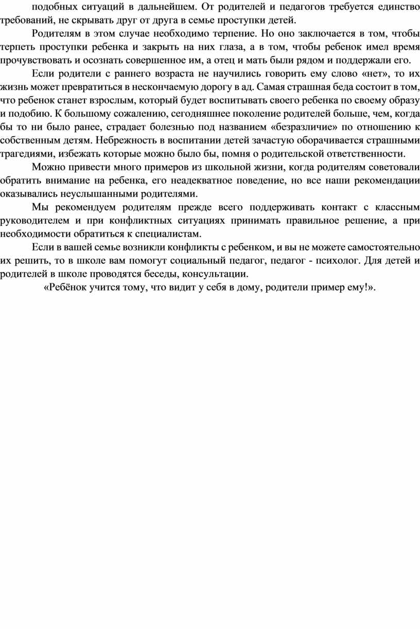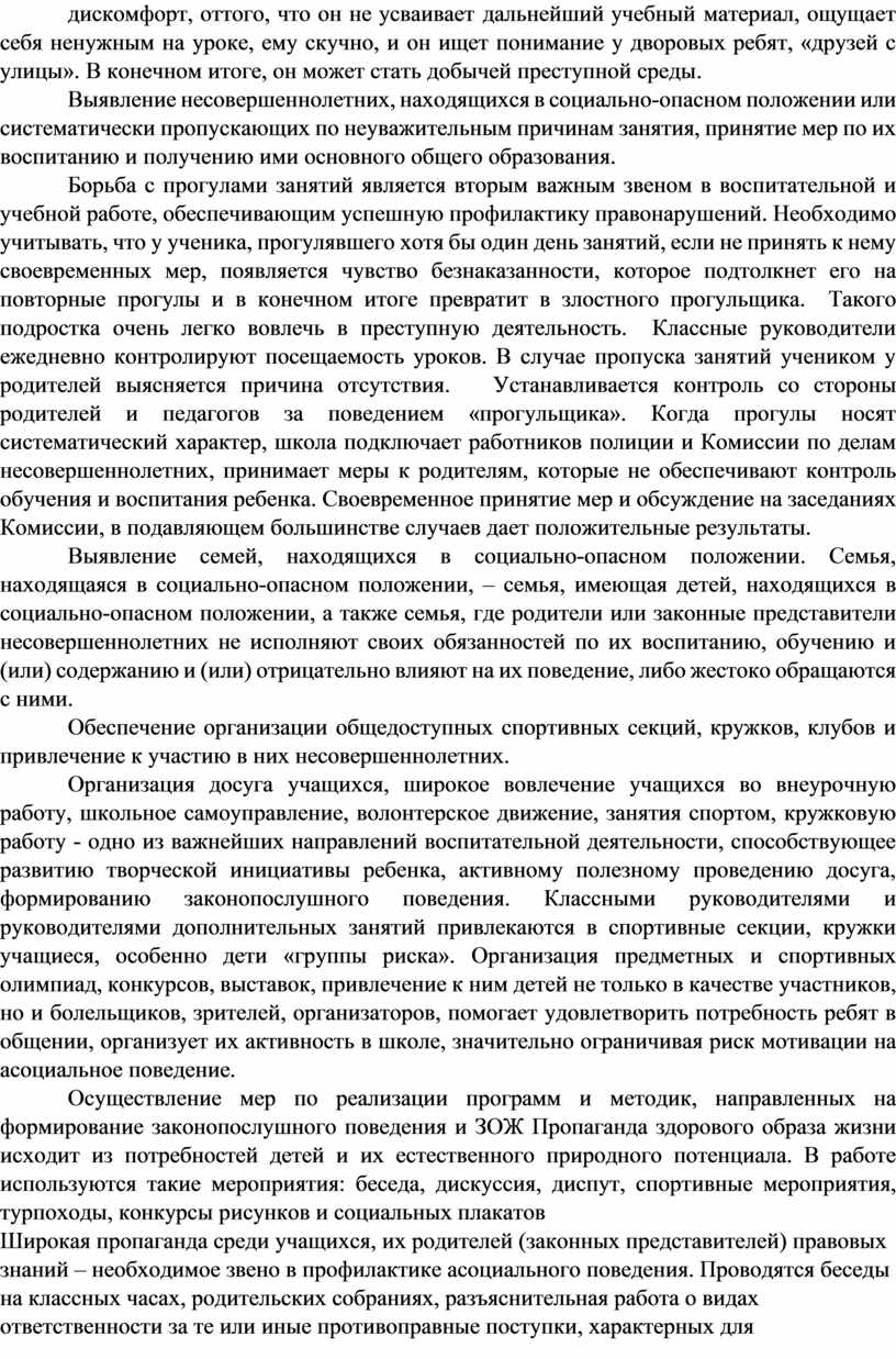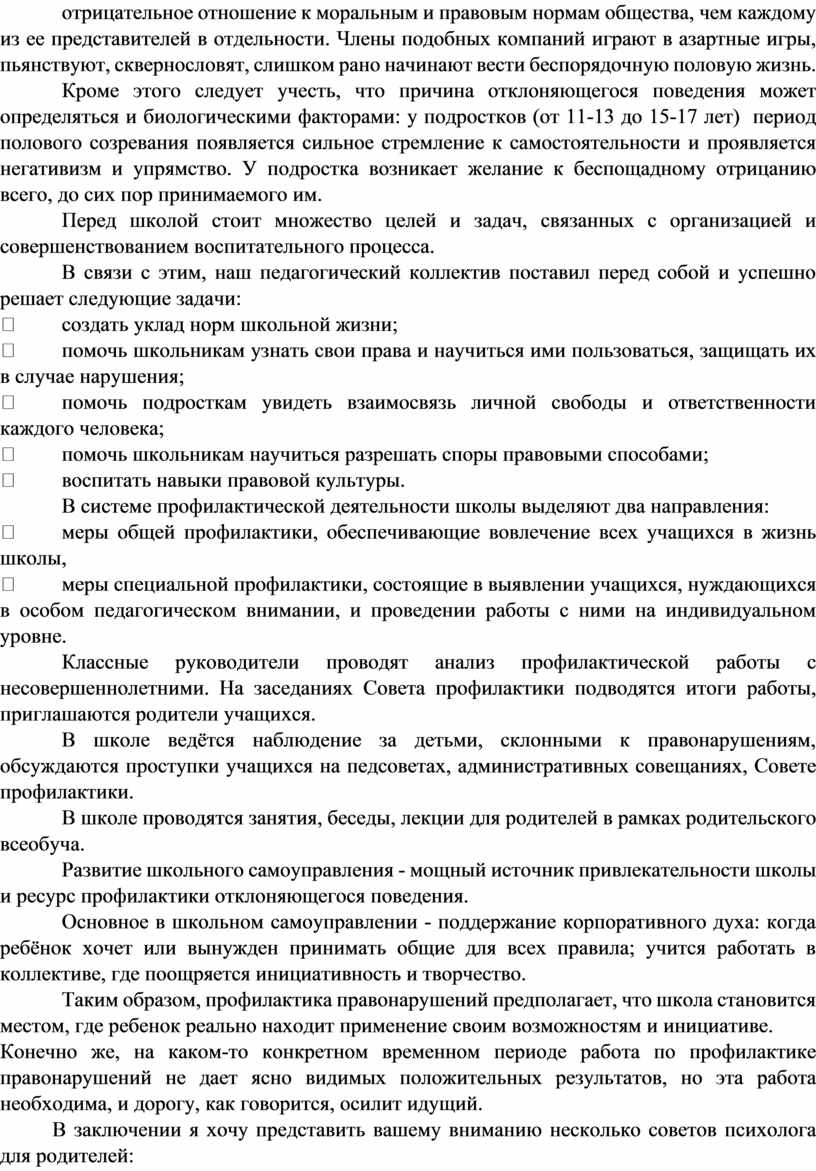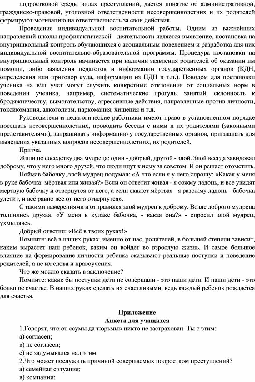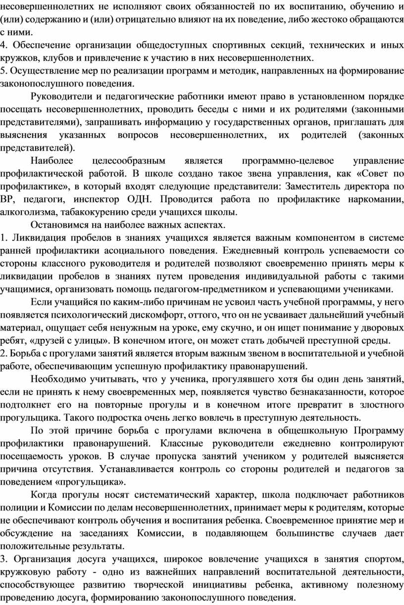 Таким образом, профилактика правонарушений предполагает, что школа становится местом, где ребенок реально находит применение своим возможностям и инициативе.