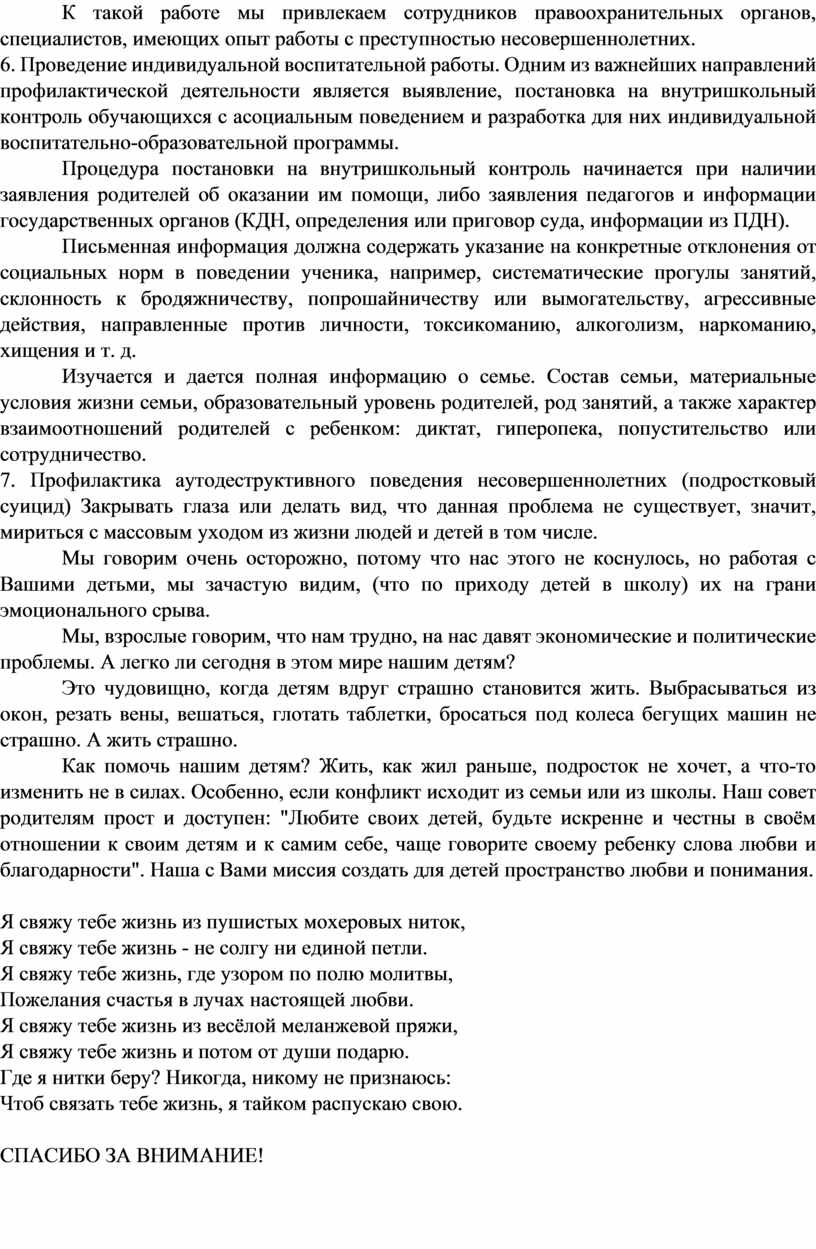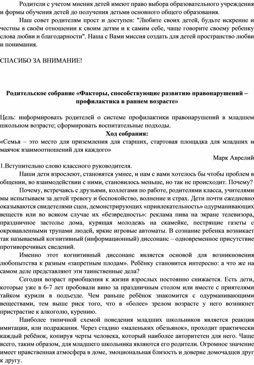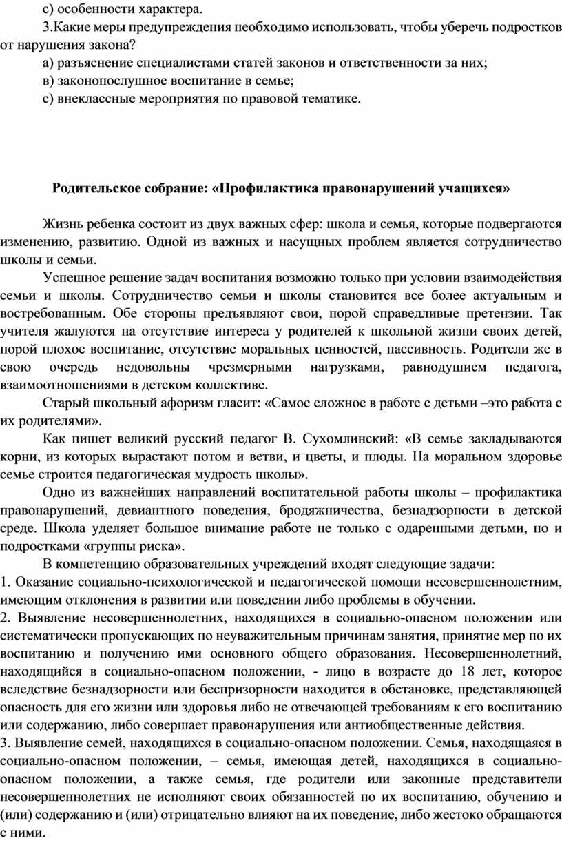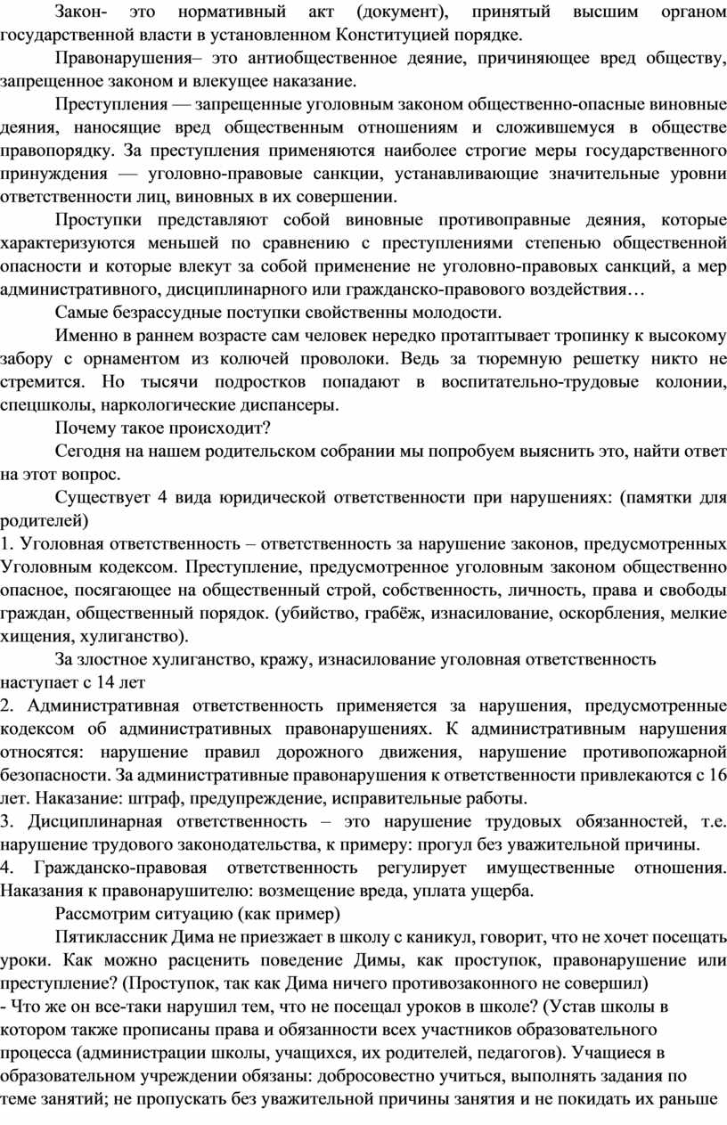 Родительское собрание «Профилактика правонарушений среди несовершеннолетних в школе»