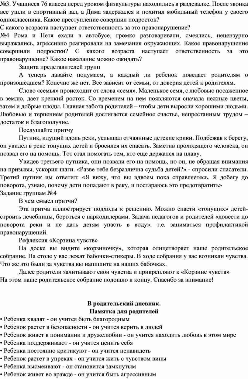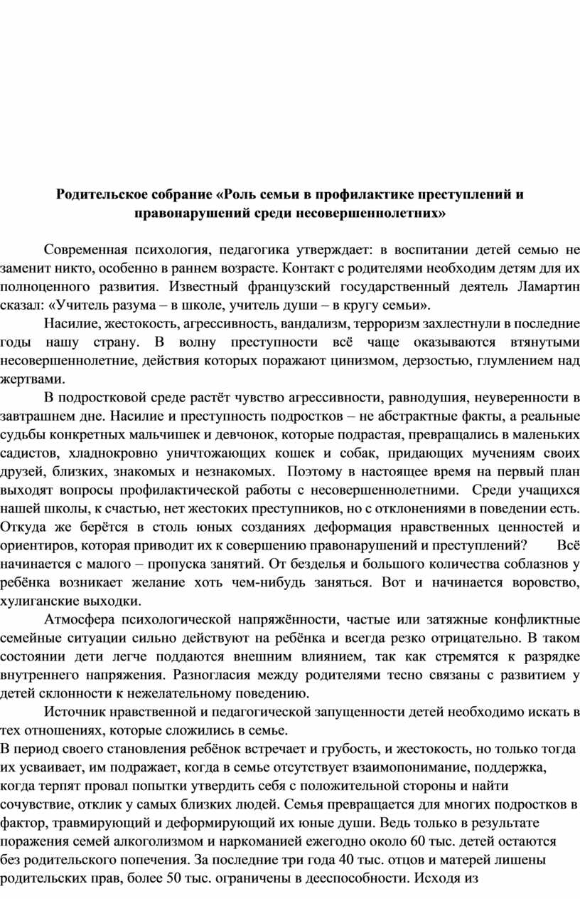 Родительское собрание «Роль семьи в профилактике преступлений и правонарушений среди несовершеннолетних» |