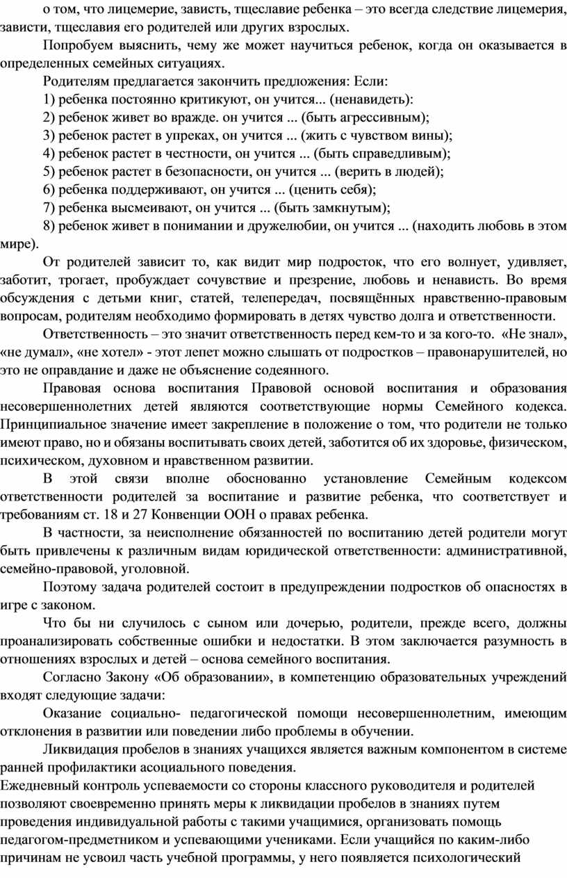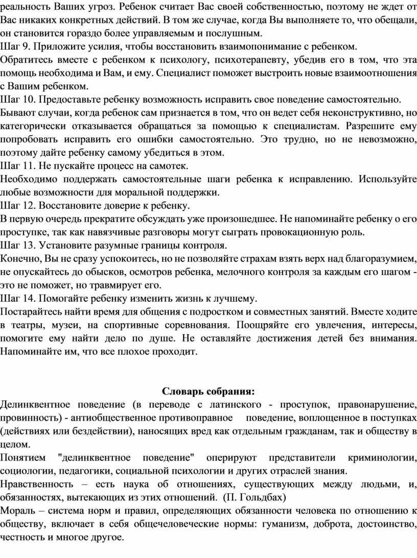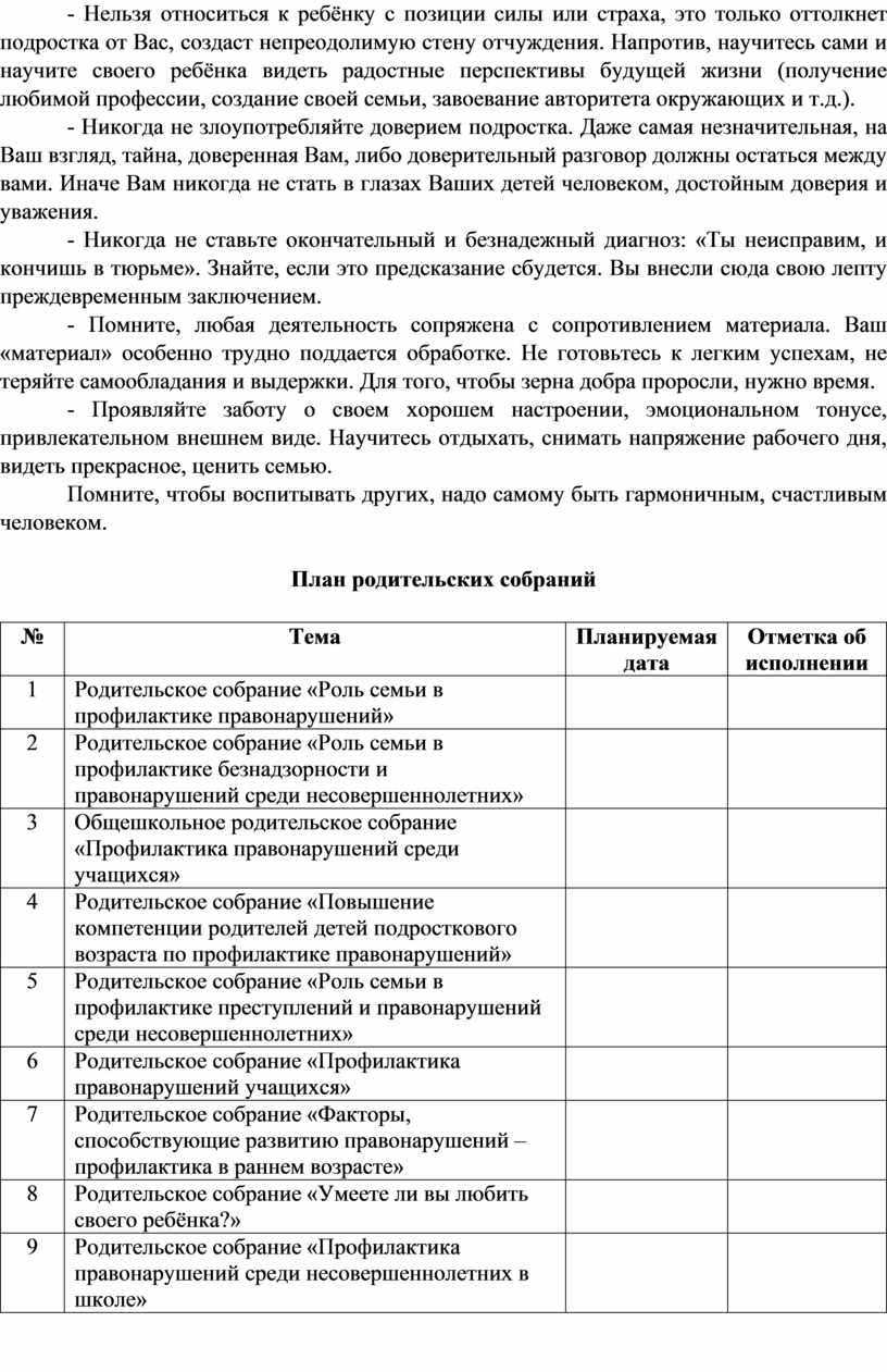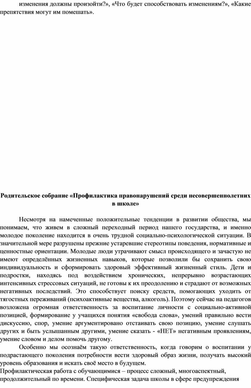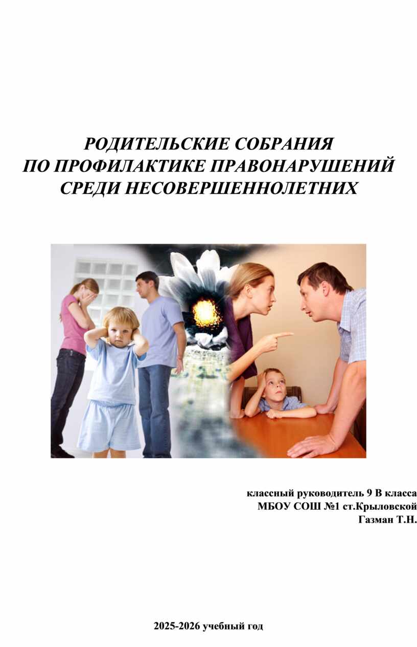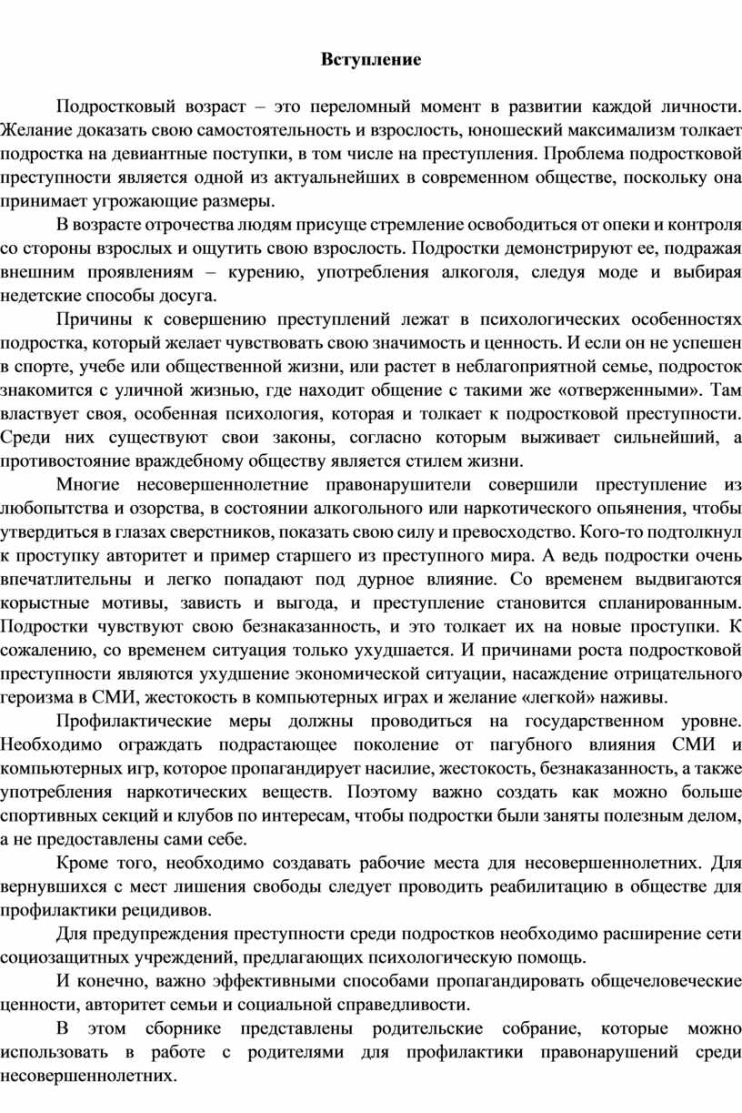 В этом сборнике представлены родительские собрание, которые можно использовать в работе с родителями для профилактики правонарушений среди несовершеннолетних.
