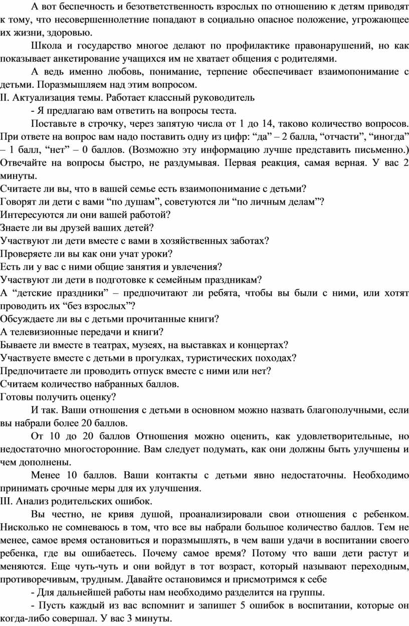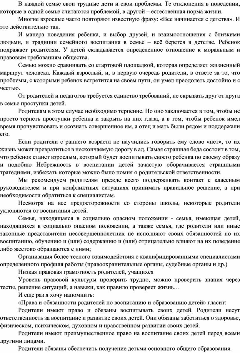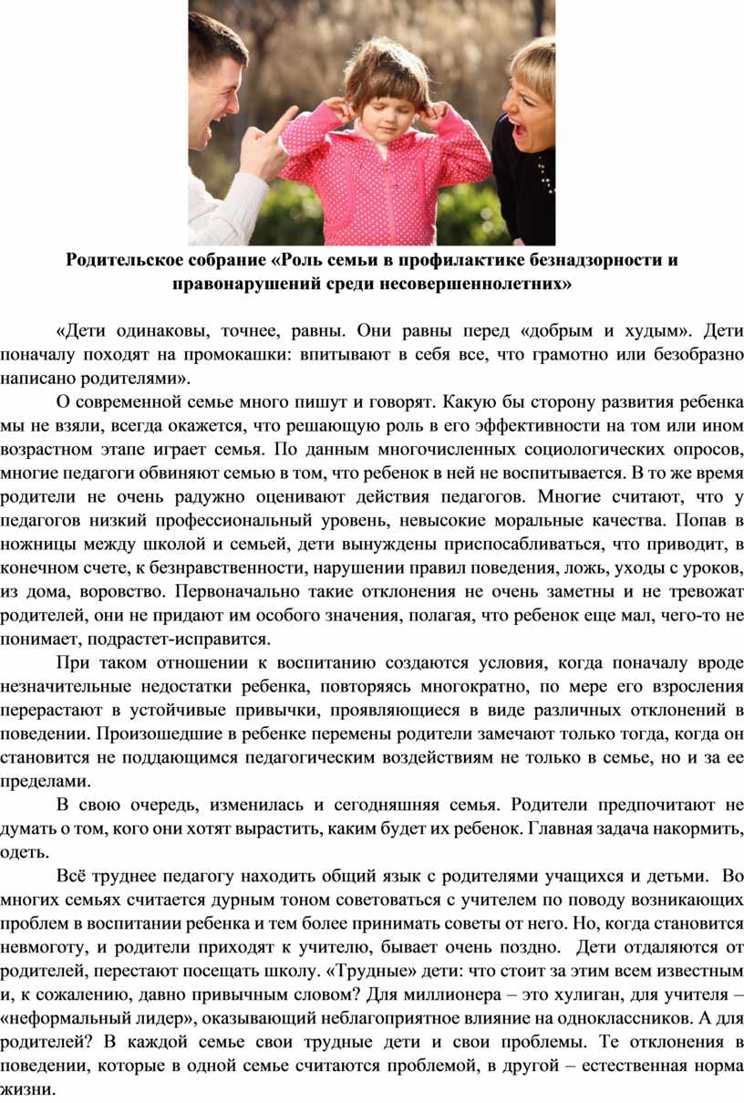 Родительское собрание «Роль семьи в профилактике безнадзорности и правонарушений среди несовершеннолетних» |