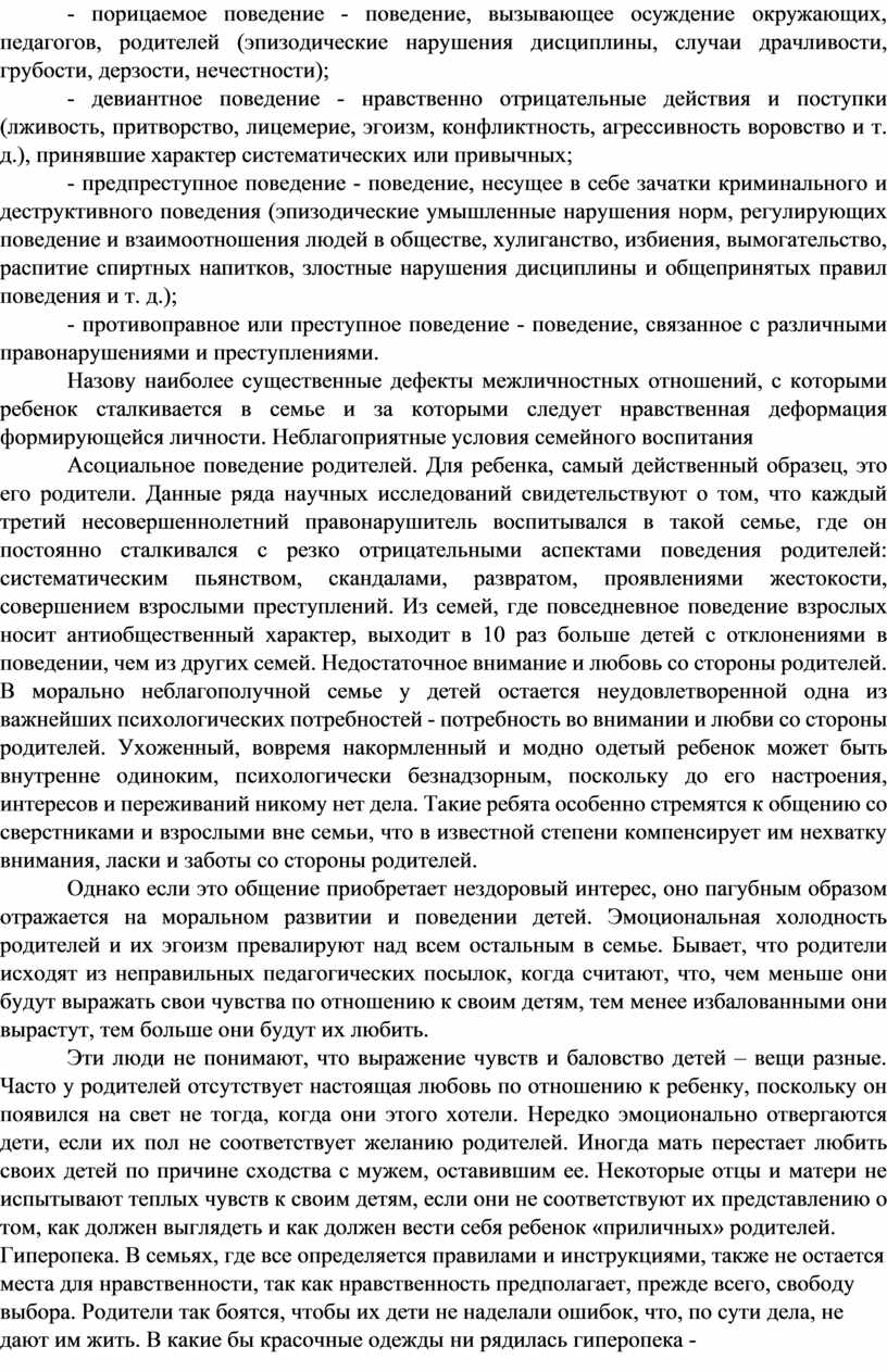 Нравственная деформация формирующейся личности и отклонения в поведении зачастую являются следствием нарушений взаимосвязей с микросредой. Назову наиболее существенные дефекты межличностных отношений, с которыми ребенок сталкивается в семье, в школе, на улице.