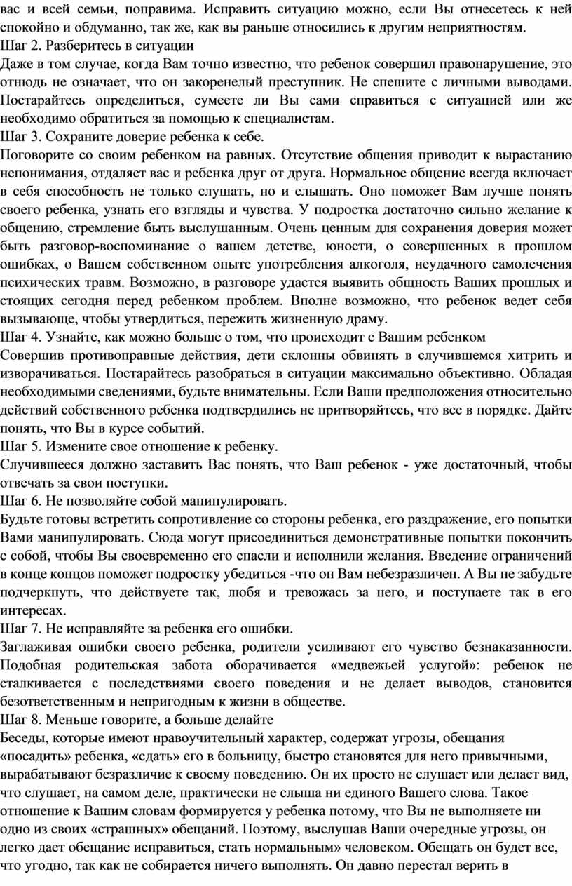 Даже в том случае, когда Вам точно известно, что ребенок совершил правонарушение, это отнюдь не означает, что он закоренелый преступник. Не спешите с личными выводами. Постарайтесь определиться, сумеете ли Вы сами справиться с ситуацией или же необходимо обратиться за помощью к специалистам.