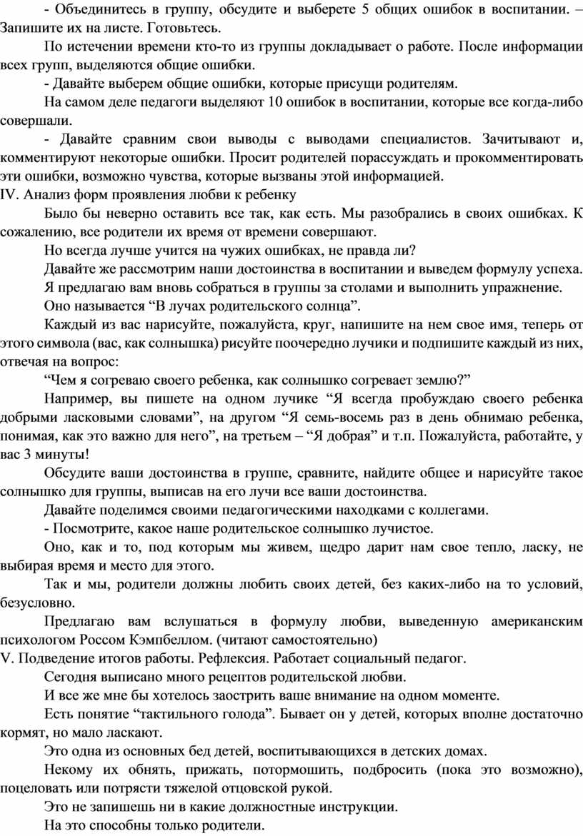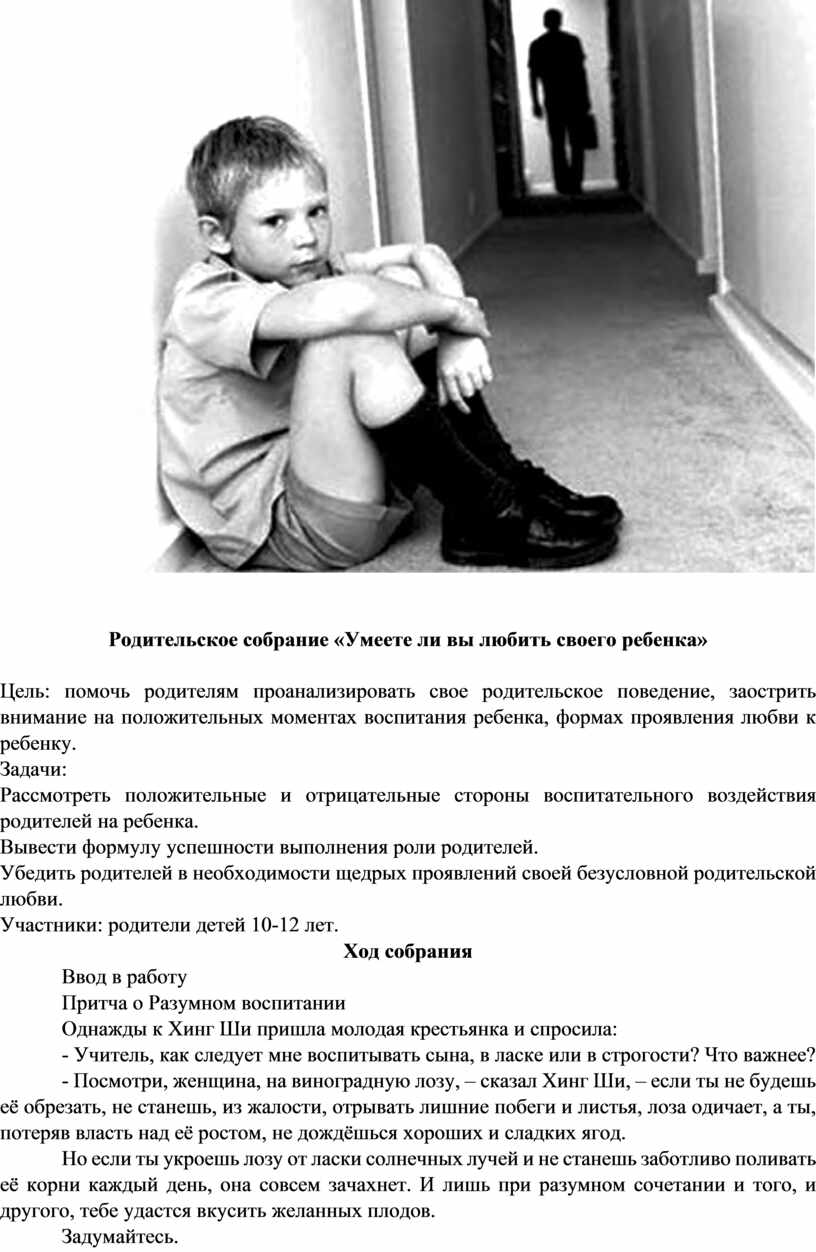 Родительское собрание «Умеете ли вы любить своего ребёнка?» |